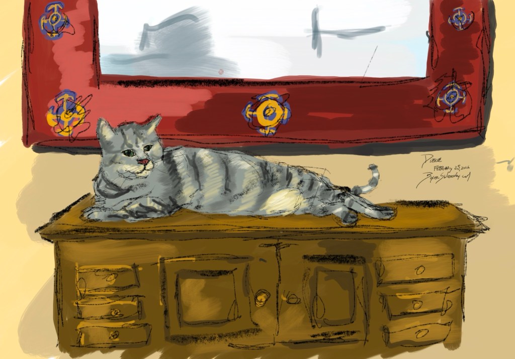 Glubs Needs the Space Heater Turned Up Share this: Email a link to a friend (Opens in new window) Email Share on X (Opens in new window) X Share on Pinterest (Opens in new window) Pinterest Share on Tumblr (Opens in new window) Tumblr Like Loading... February 17, 2026 by B.X. Sweeney Categories: iPad paintingTags: cat, drawing, life drawing, sketch Leave a comment
