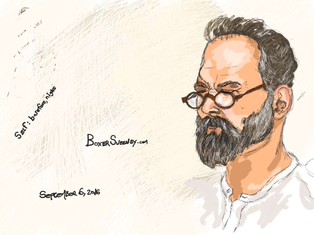 Self: Barefoot,Night Share this: Click to email a link to a friend (Opens in new window) Email Click to share on X (Opens in new window) X Click to share on Pinterest (Opens in new window) Pinterest Click to share on Tumblr (Opens in new window) Tumblr Like Loading... Related September 6, 2016 by B.X. Sweeney Categories: iPad painting, Self PortraitTags: boxer sweeney, digital art, drawing, ipad drawing, painting, paul pastrone, portrait, self portrait, sketch Leave a comment