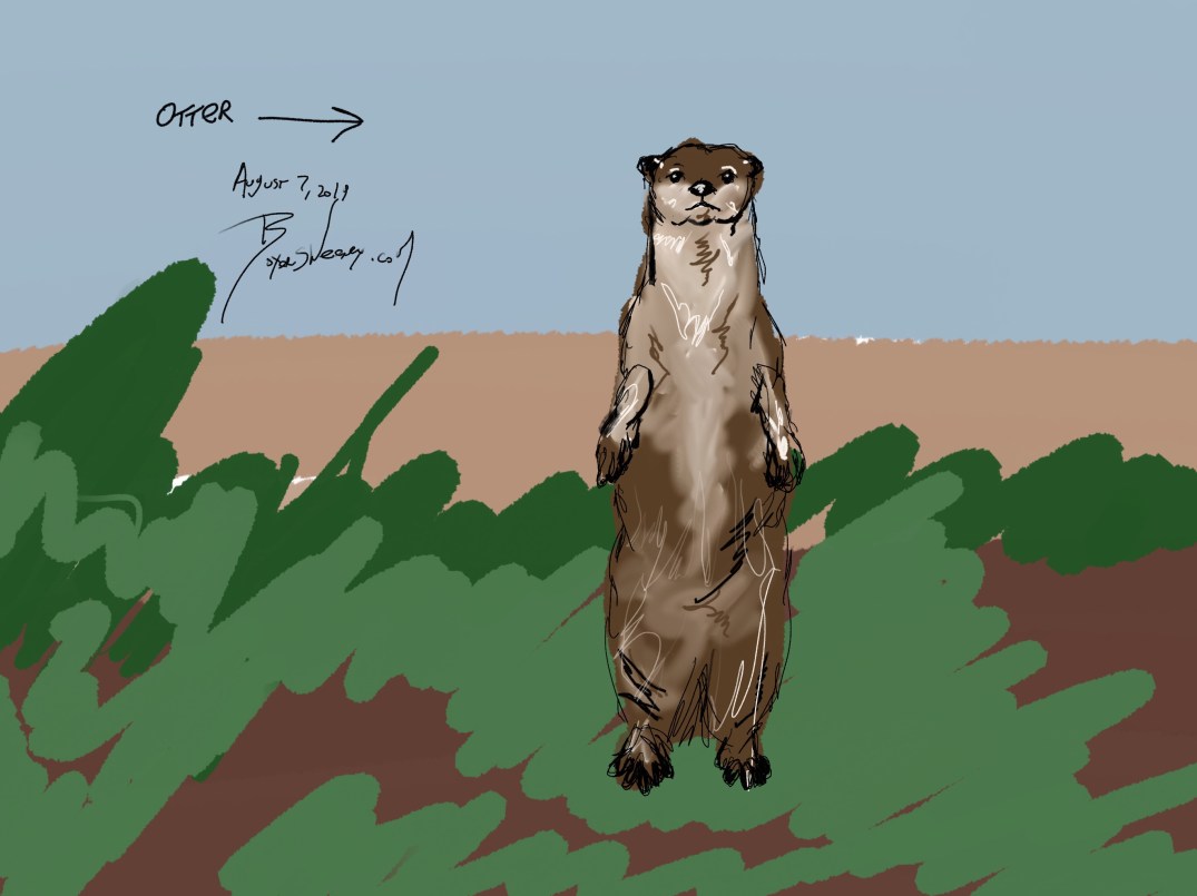 Otter Share this: Click to email a link to a friend (Opens in new window) Email Click to share on X (Opens in new window) X Click to share on Pinterest (Opens in new window) Pinterest Click to share on Tumblr (Opens in new window) Tumblr Like Loading... Related August 8, 2019 by B.X. Sweeney Categories: iPad paintingTags: draw, drawing, ipad drawing, sketch Leave a comment