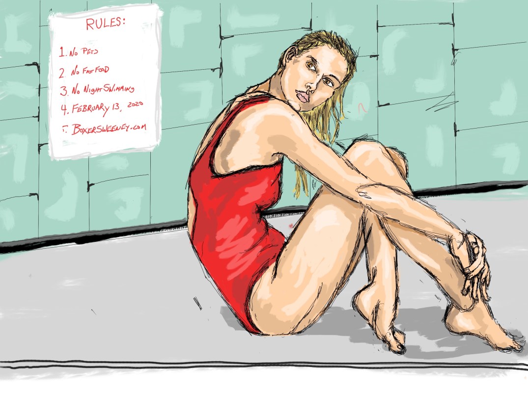 No Night Swimming Share this: Click to email a link to a friend (Opens in new window) Email Click to share on X (Opens in new window) X Click to share on Pinterest (Opens in new window) Pinterest Click to share on Tumblr (Opens in new window) Tumblr Like Loading... Related February 13, 2020 by B.X. Sweeney Categories: iPad paintingTags: digital art, drawing, figure drawing, ipad drawing, portrait, sketch Leave a comment