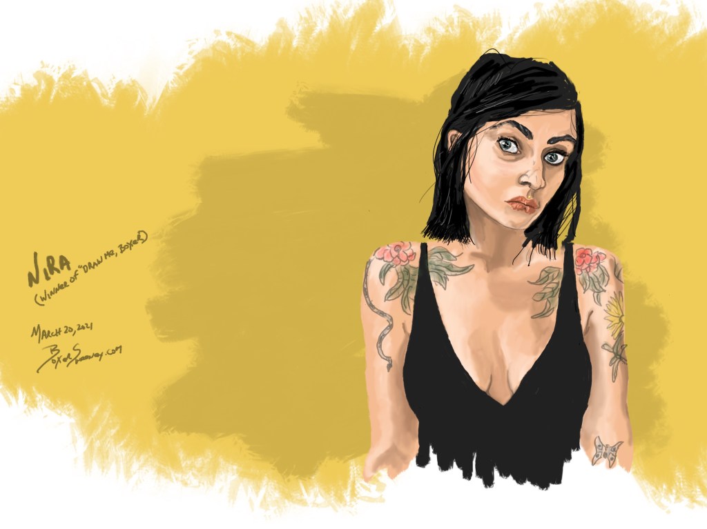 Nira Share this: Click to email a link to a friend (Opens in new window) Email Click to share on X (Opens in new window) X Click to share on Pinterest (Opens in new window) Pinterest Click to share on Tumblr (Opens in new window) Tumblr Like Loading... Related March 20, 2021 by B.X. Sweeney Categories: iPad paintingTags: digital art, drawing, ipad drawing, portrait Leave a comment
