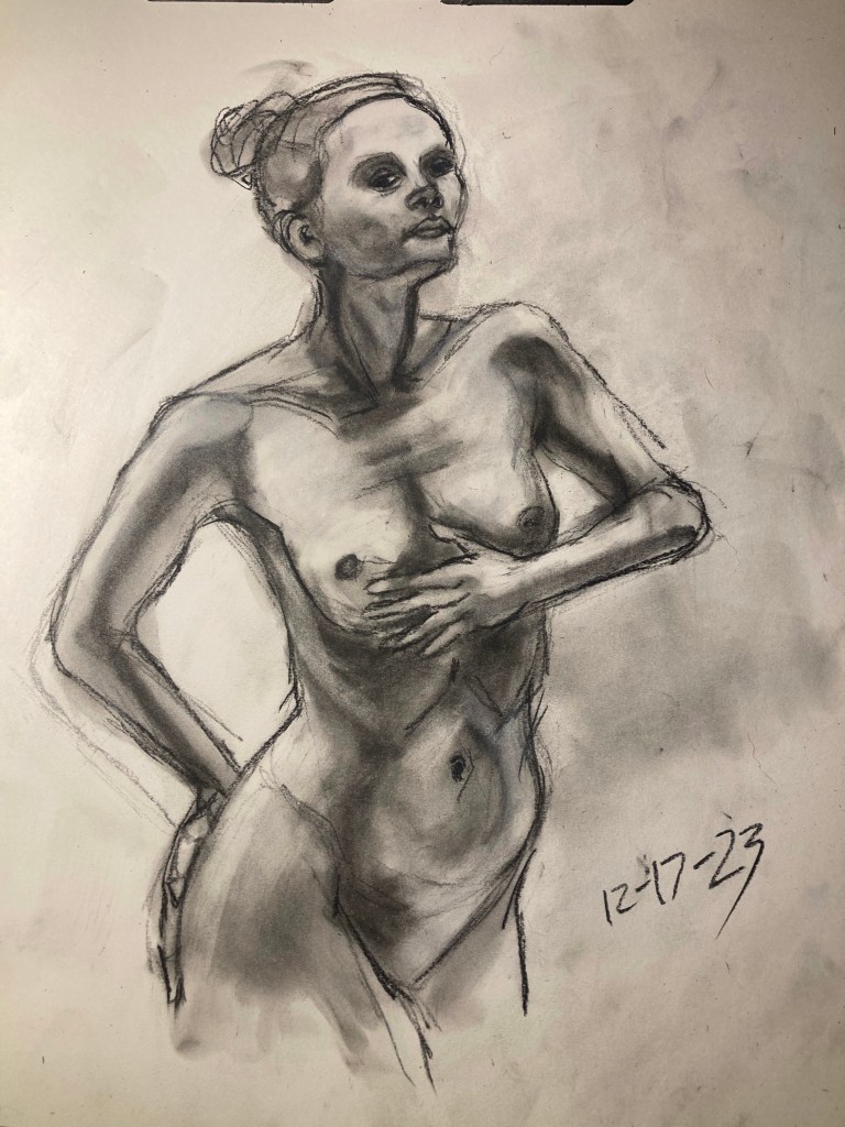 C-161 Share this: Click to email a link to a friend (Opens in new window) Email Click to share on X (Opens in new window) X Click to share on Pinterest (Opens in new window) Pinterest Click to share on Tumblr (Opens in new window) Tumblr Like Loading... Related December 18, 2023 by B.X. Sweeney Categories: charcoalTags: drawing, figure drawing, life drawing Leave a comment