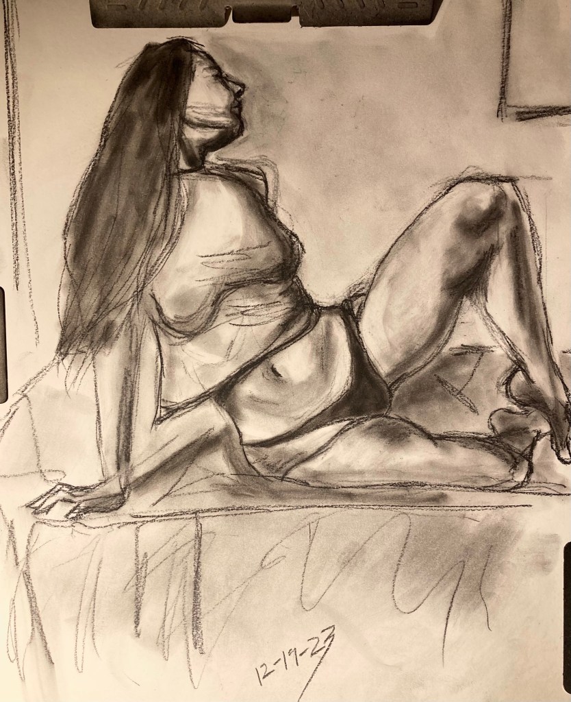 C-163 Share this: Click to email a link to a friend (Opens in new window) Email Click to share on X (Opens in new window) X Click to share on Pinterest (Opens in new window) Pinterest Click to share on Tumblr (Opens in new window) Tumblr Like Loading... Related December 20, 2023 by B.X. Sweeney Categories: charcoalTags: drawing, figure drawing, life drawing Leave a comment