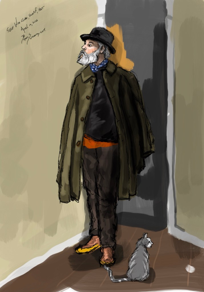 Self with Cloak, Scarf, Hat Share this: Email a link to a friend (Opens in new window) Email Share on X (Opens in new window) X Share on Pinterest (Opens in new window) Pinterest Share on Tumblr (Opens in new window) Tumblr Like Loading... Related April 10, 2026 by B.X. Sweeney Categories: iPad painting, Self PortraitTags: digital art, drawing, self portrait, sketch Leave a comment