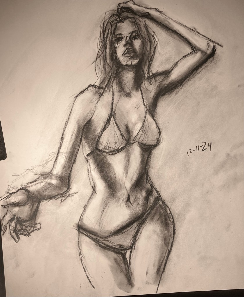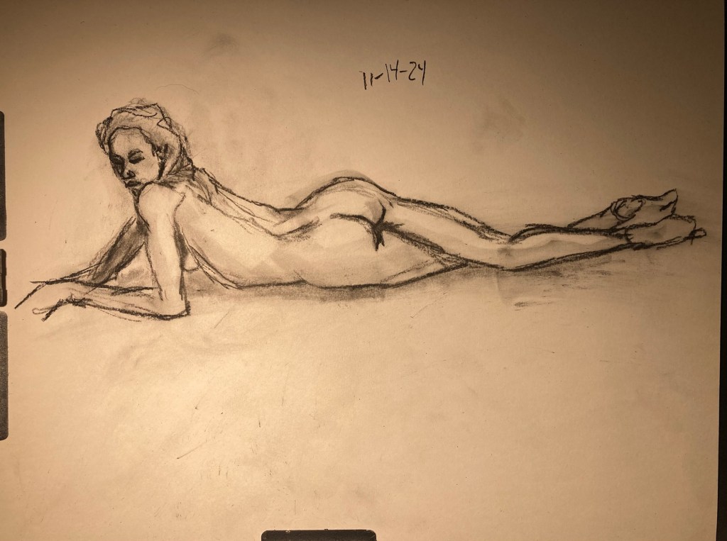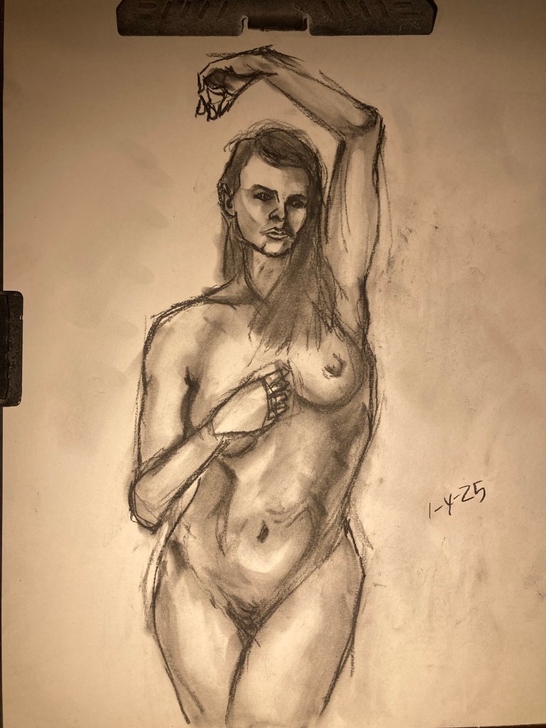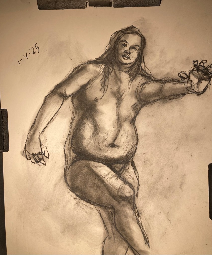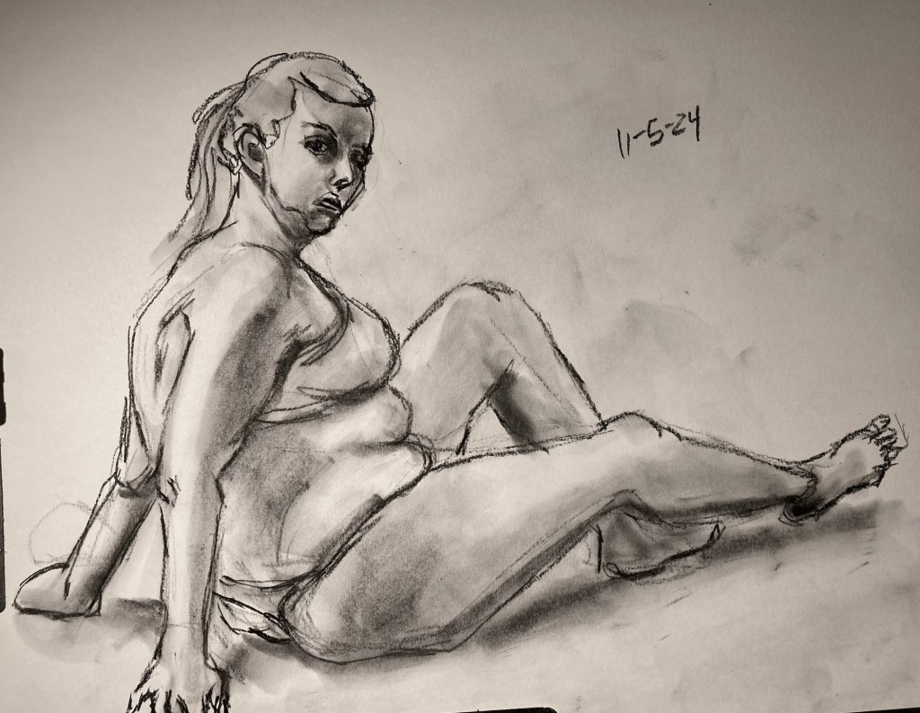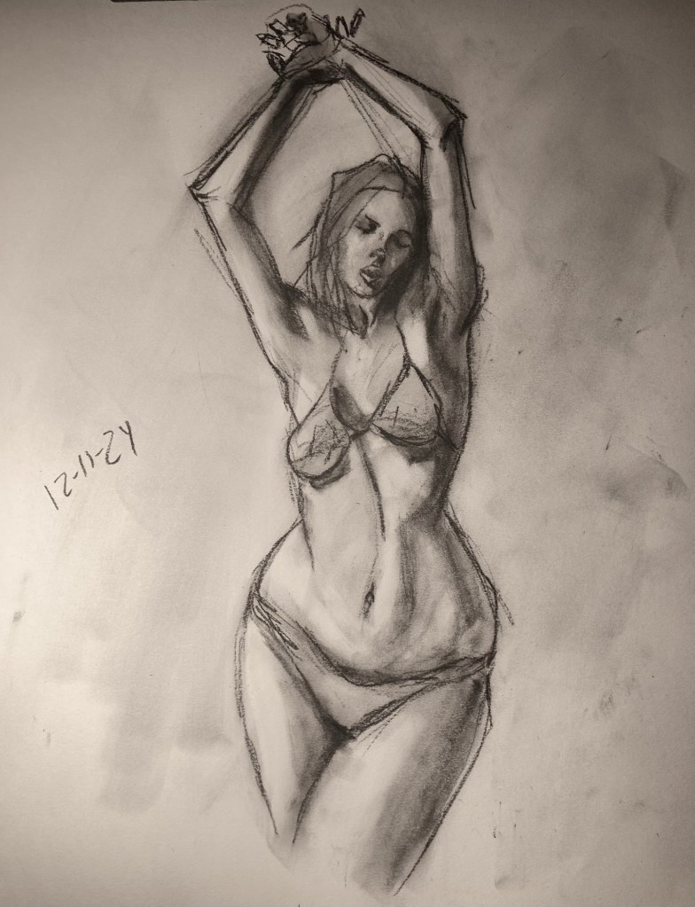 Share this: Click to email a link to a friend (Opens in new window) Email Click to share on X (Opens in new window) X Click to share on Pinterest (Opens in new window) Pinterest Click to share on Tumblr (Opens in new window) Tumblr Like Loading... January 6, 2025 by B.X. Sweeney Categories: charcoalTags: drawing, figure drawing, life drawing Leave a comment