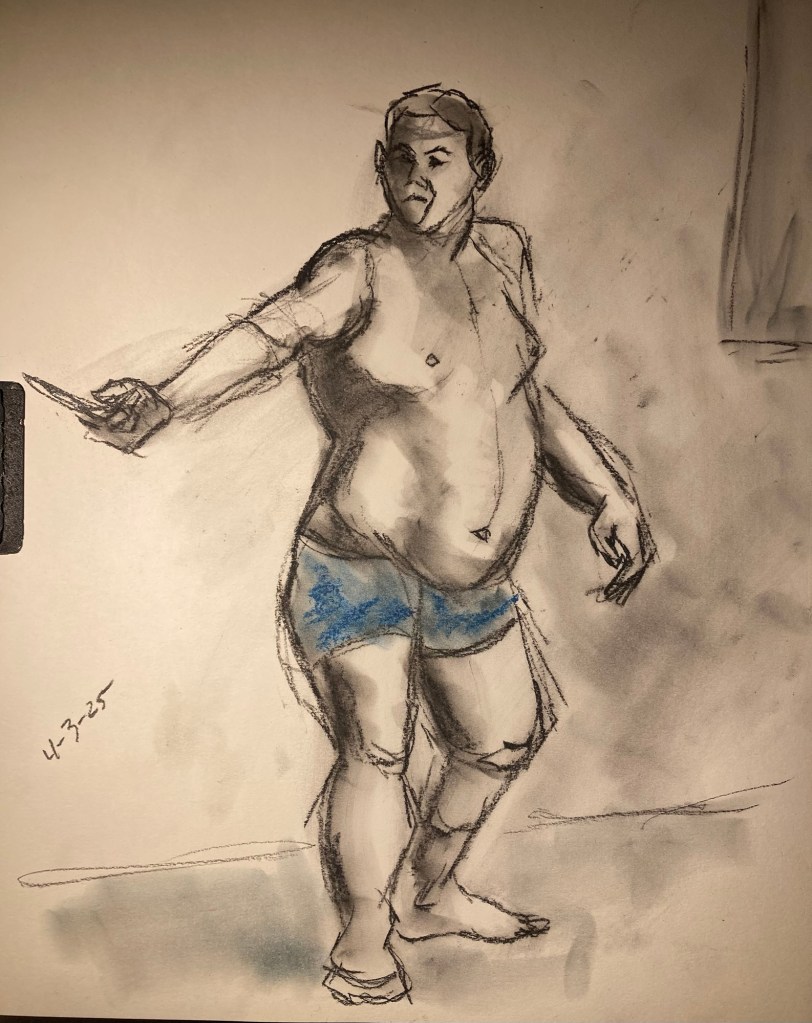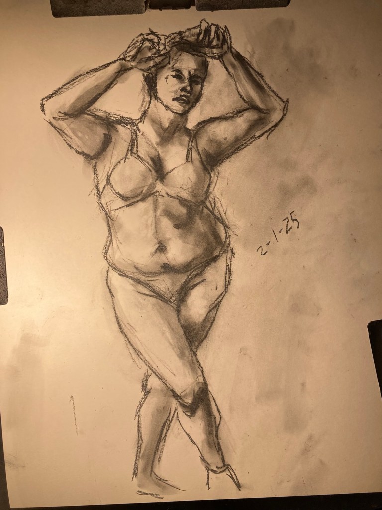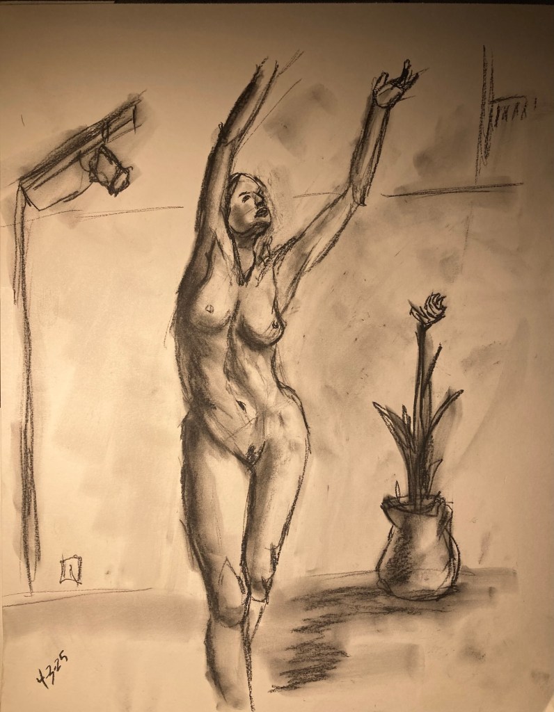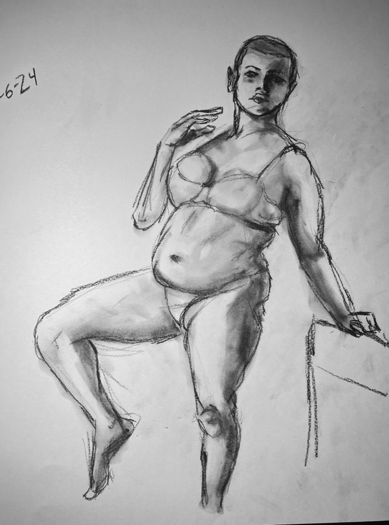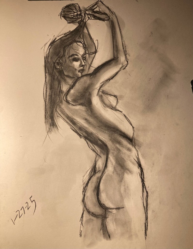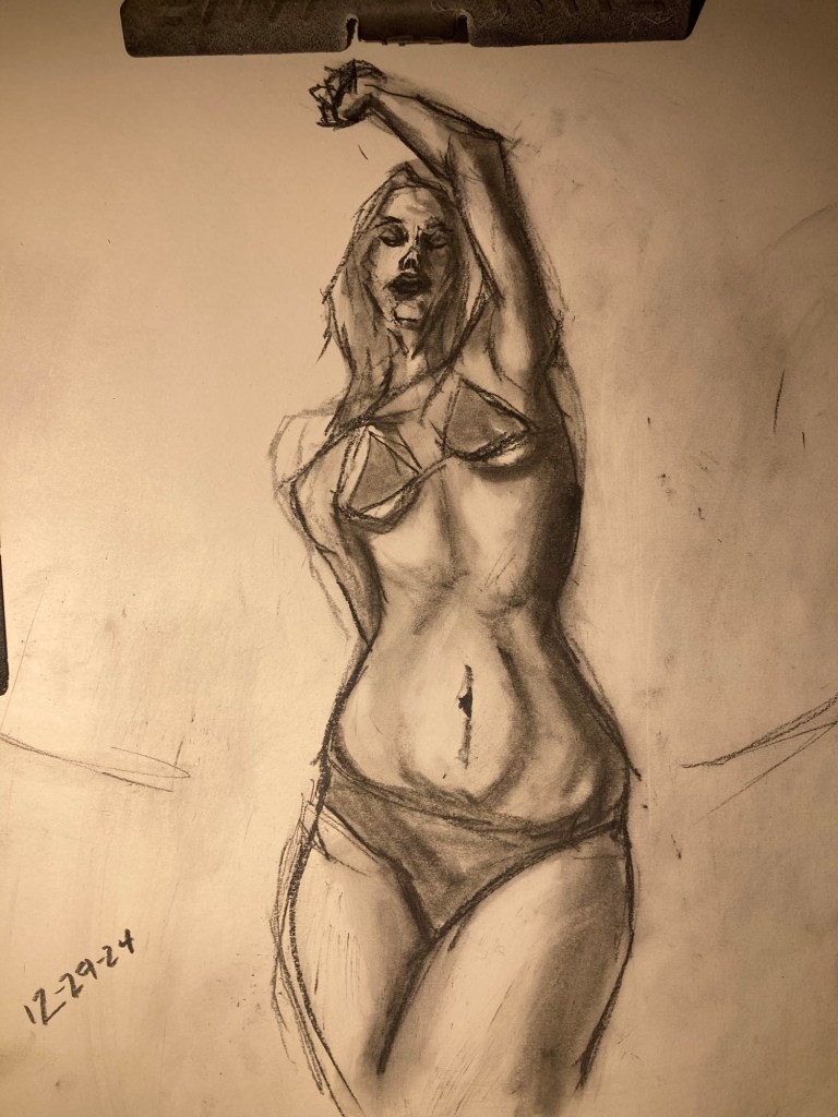 Share this: Click to email a link to a friend (Opens in new window) Email Click to share on X (Opens in new window) X Click to share on Pinterest (Opens in new window) Pinterest Click to share on Tumblr (Opens in new window) Tumblr Like Loading... January 6, 2025 by B.X. Sweeney Categories: charcoalTags: drawing, figure drawing, life drawing Leave a comment