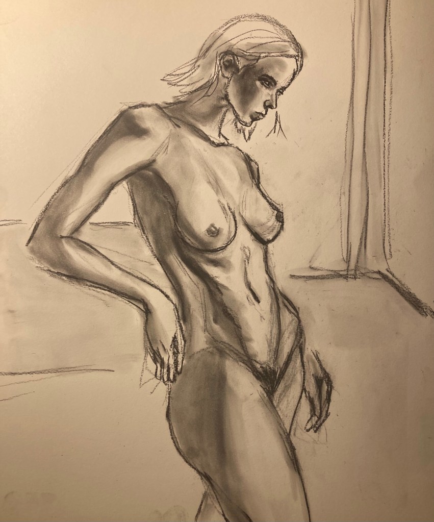 C-90 Share this: Click to email a link to a friend (Opens in new window) Email Click to share on X (Opens in new window) X Click to share on Pinterest (Opens in new window) Pinterest Click to share on Tumblr (Opens in new window) Tumblr Like Loading... August 14, 2023 by B.X. Sweeney Categories: charcoal sketchTags: drawing, figure drawing, life drawing Leave a comment