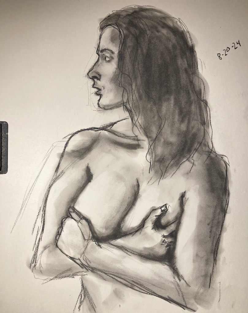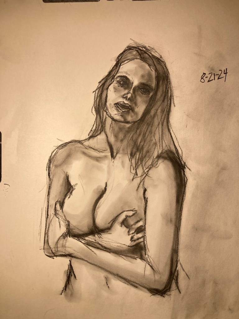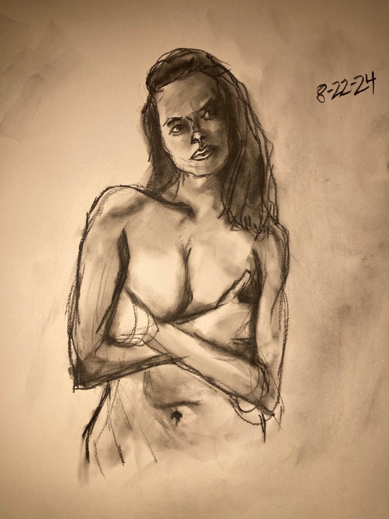 Share this: Click to email a link to a friend (Opens in new window) Email Click to share on X (Opens in new window) X Click to share on Pinterest (Opens in new window) Pinterest Click to share on Tumblr (Opens in new window) Tumblr Like Loading... January 6, 2025 by B.X. Sweeney Categories: charcoalTags: drawing, figure drawing, life drawing Leave a comment