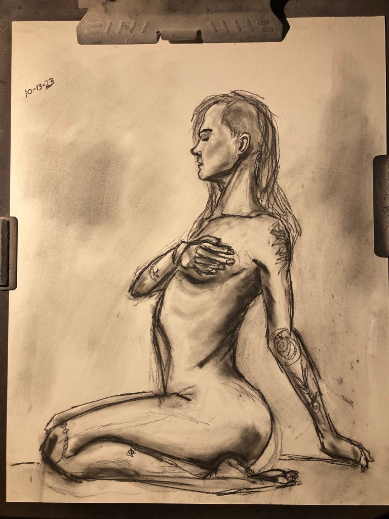 C-128 Share this: Click to email a link to a friend (Opens in new window) Email Click to share on X (Opens in new window) X Click to share on Pinterest (Opens in new window) Pinterest Click to share on Tumblr (Opens in new window) Tumblr Like Loading... October 16, 2023 by B.X. Sweeney Categories: charcoalTags: figure drawing, life drawing Leave a comment