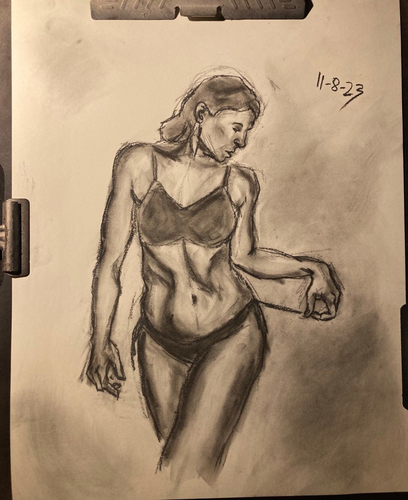 C-167 Share this: Click to email a link to a friend (Opens in new window) Email Click to share on X (Opens in new window) X Click to share on Pinterest (Opens in new window) Pinterest Click to share on Tumblr (Opens in new window) Tumblr Like Loading... December 26, 2023 by B.X. Sweeney Categories: charcoalTags: drawing, figure drawing, life drawing Leave a comment