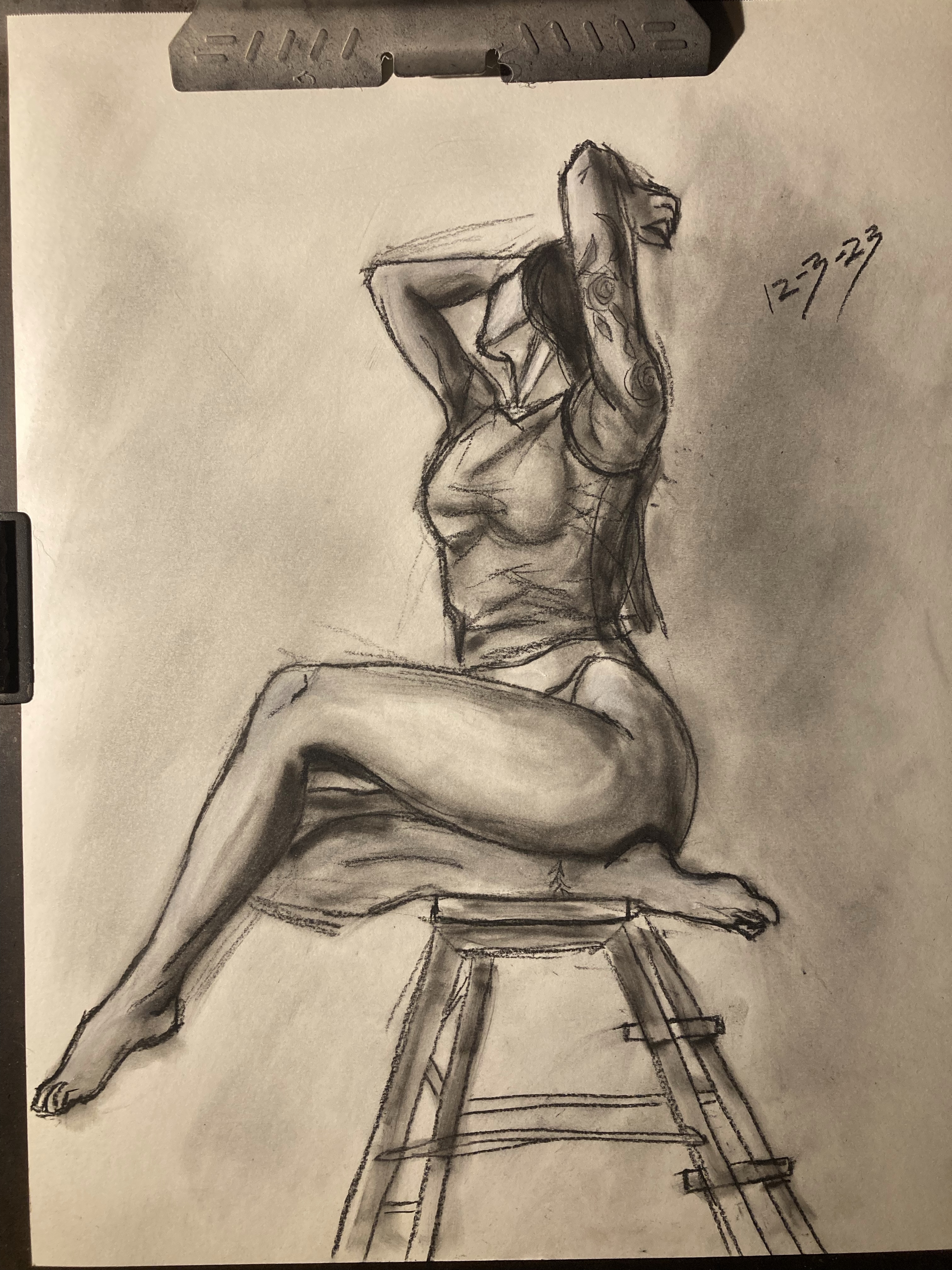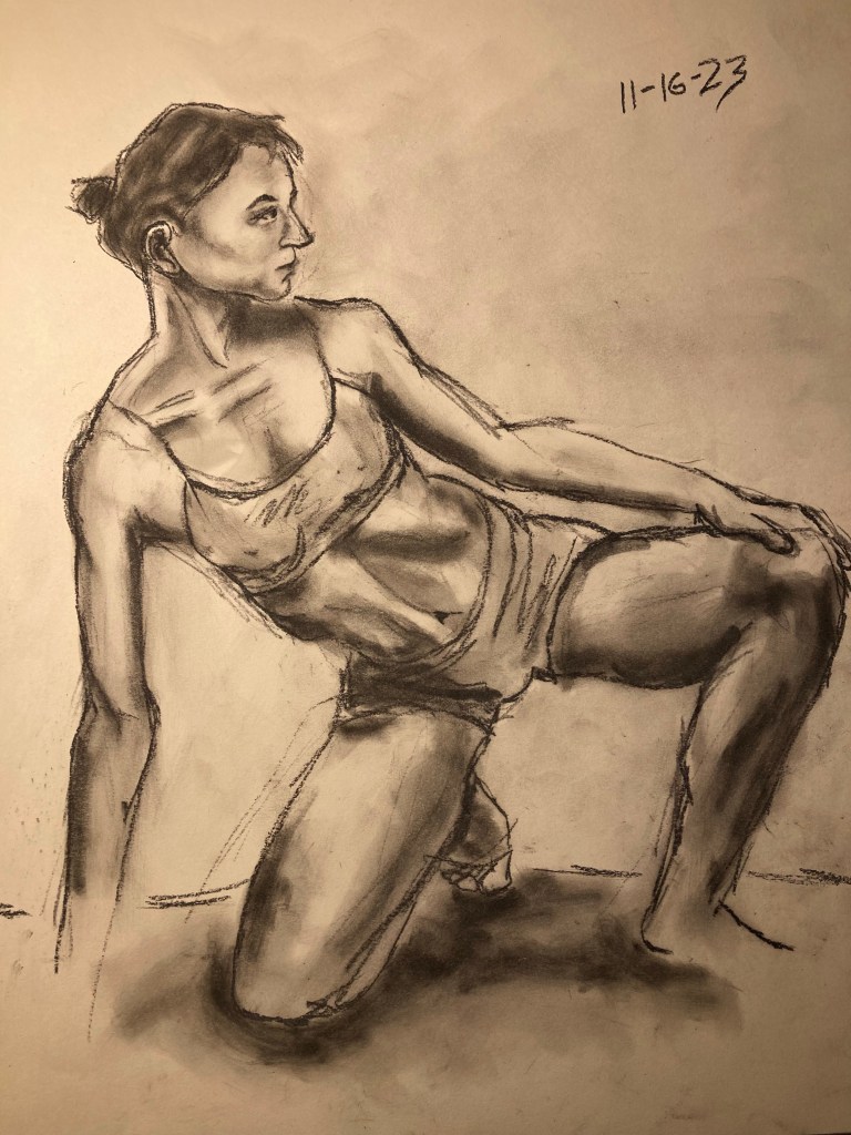 C-130 Share this: Click to email a link to a friend (Opens in new window) Email Click to share on X (Opens in new window) X Click to share on Pinterest (Opens in new window) Pinterest Click to share on Tumblr (Opens in new window) Tumblr Like Loading... October 18, 2023 by B.X. Sweeney Categories: charcoalTags: drawing, figure drawing, life drawing Leave a comment
