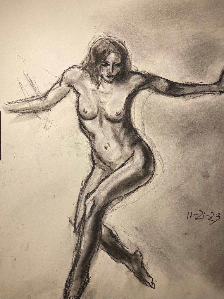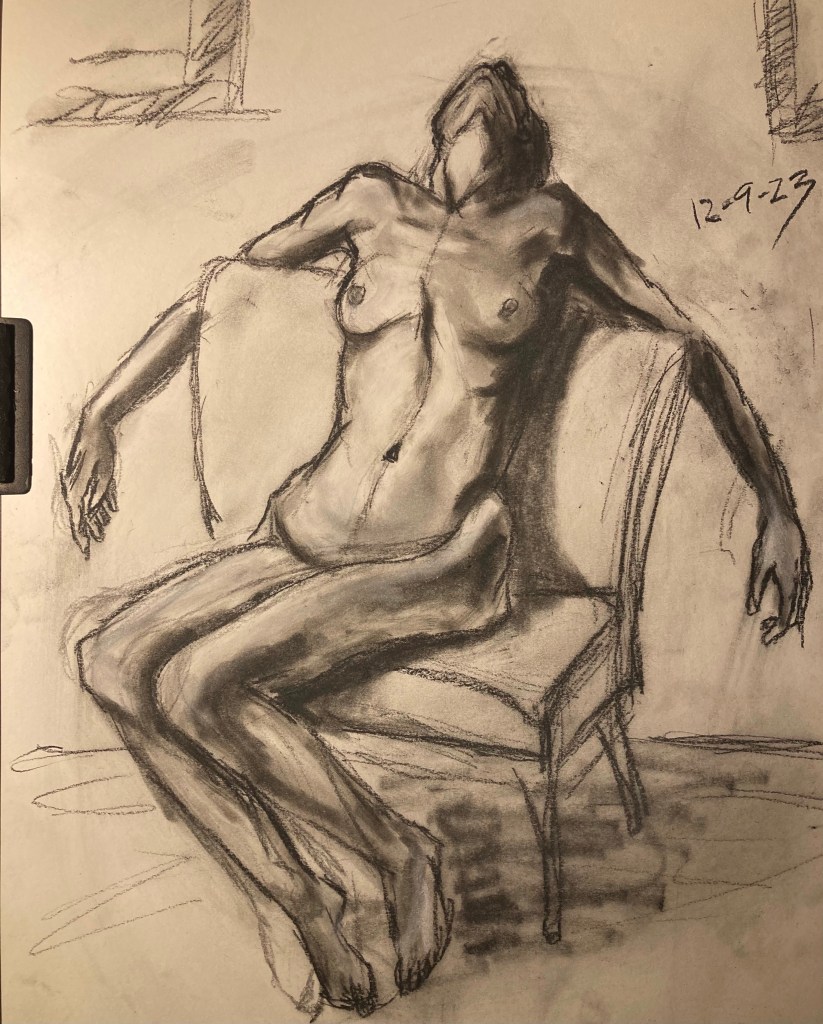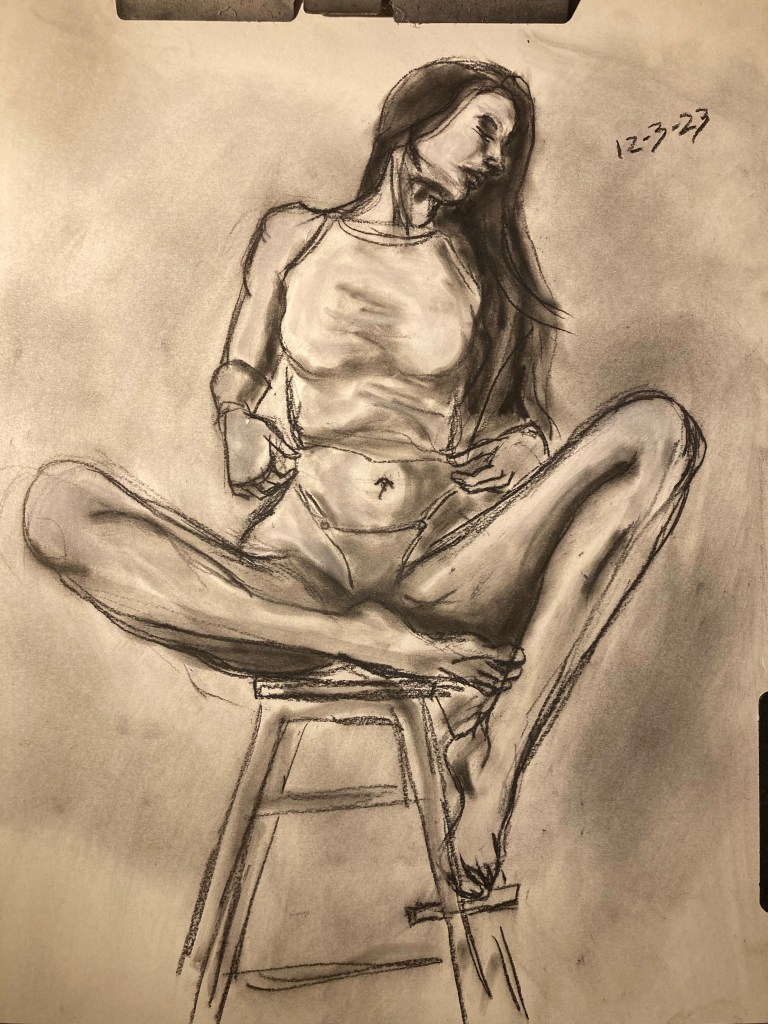 C-158 Share this: Click to email a link to a friend (Opens in new window) Email Click to share on X (Opens in new window) X Click to share on Pinterest (Opens in new window) Pinterest Click to share on Tumblr (Opens in new window) Tumblr Like Loading... December 12, 2023 by B.X. Sweeney Categories: charcoalTags: figure drawing, life drawing Leave a comment