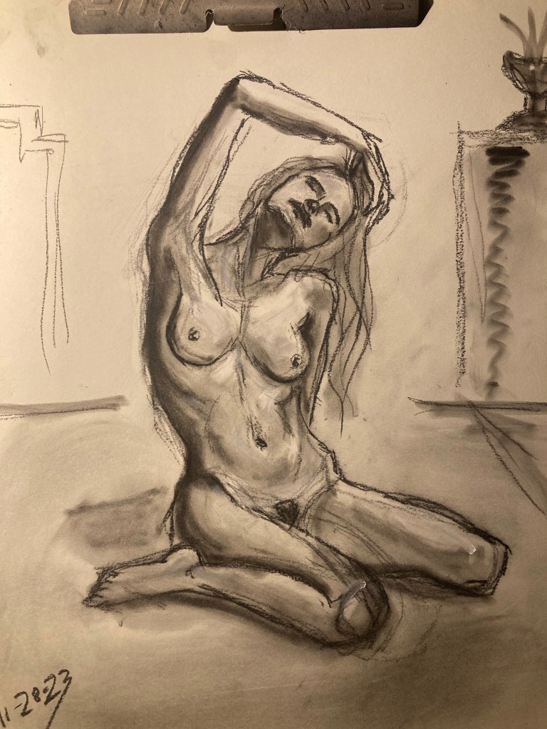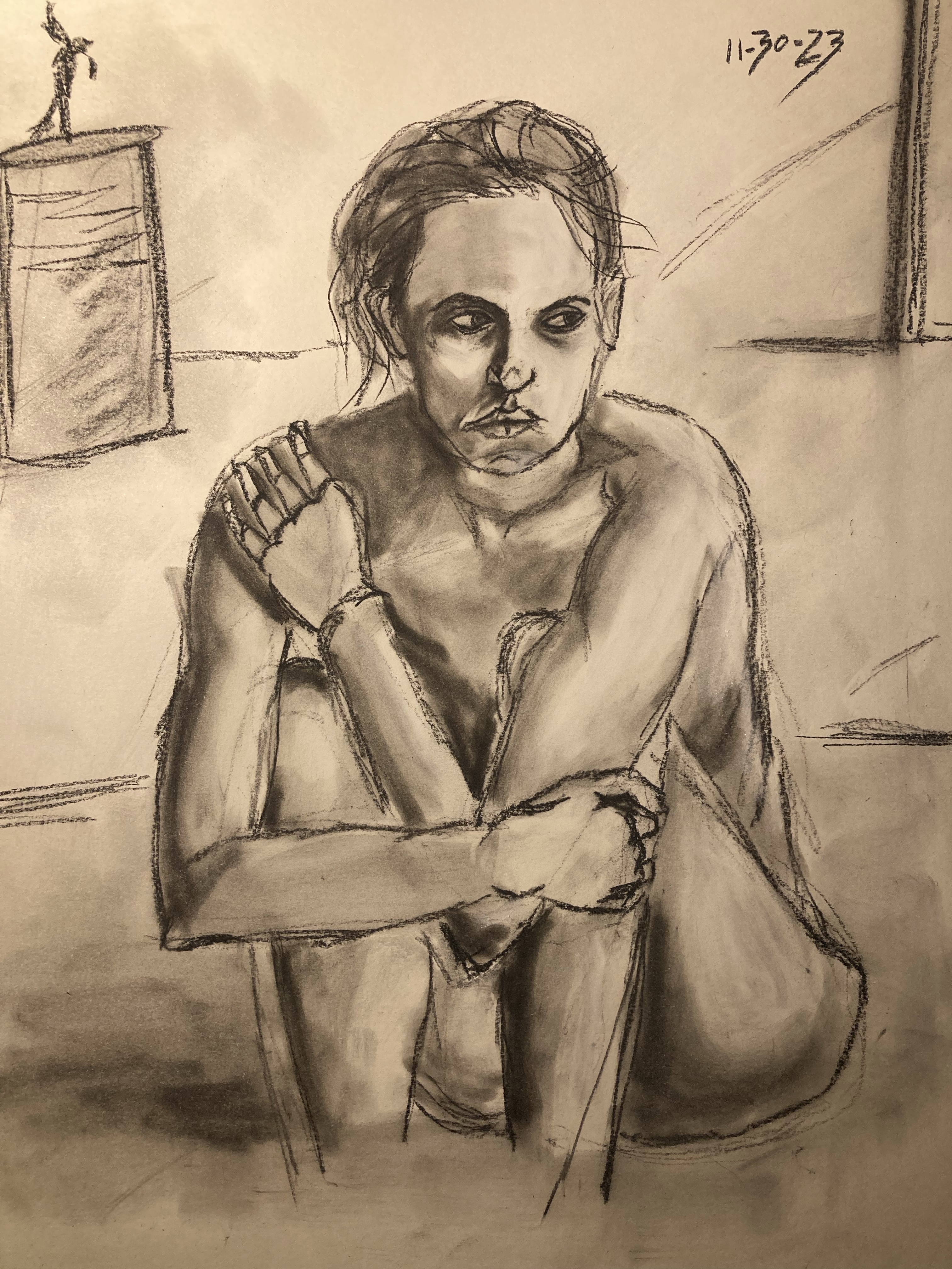 C-136 Share this: Click to email a link to a friend (Opens in new window) Email Click to share on X (Opens in new window) X Click to share on Pinterest (Opens in new window) Pinterest Click to share on Tumblr (Opens in new window) Tumblr Like Loading... November 6, 2023 by B.X. Sweeney Categories: charcoalTags: drawing, figure drawing, life drawing Leave a comment