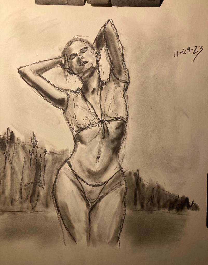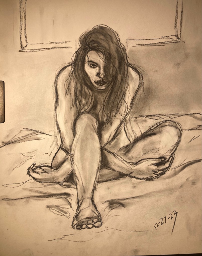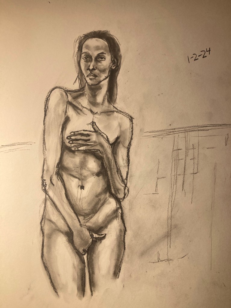 C-169 Share this: Click to email a link to a friend (Opens in new window) Email Click to share on X (Opens in new window) X Click to share on Pinterest (Opens in new window) Pinterest Click to share on Tumblr (Opens in new window) Tumblr Like Loading... January 2, 2024 by B.X. Sweeney Categories: charcoalTags: drawing, figure drawing, life drawing Leave a comment