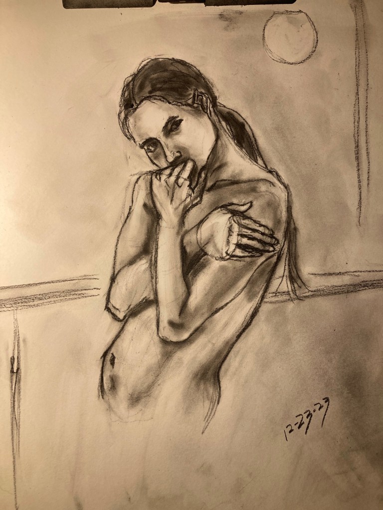 C-160 Share this: Click to email a link to a friend (Opens in new window) Email Click to share on X (Opens in new window) X Click to share on Pinterest (Opens in new window) Pinterest Click to share on Tumblr (Opens in new window) Tumblr Like Loading... December 18, 2023 by B.X. Sweeney Categories: charcoalTags: drawing, figure drawing, life drawing Leave a comment