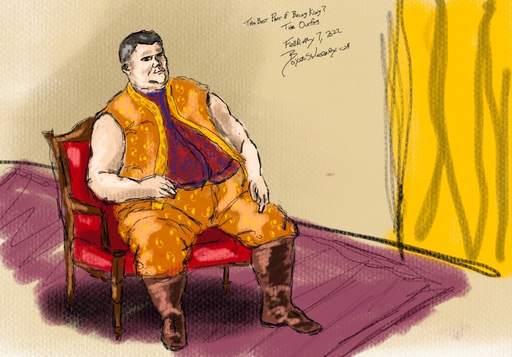 The Best Part of Being King? The Outfits Share this: Click to email a link to a friend (Opens in new window) Email Click to share on X (Opens in new window) X Click to share on Pinterest (Opens in new window) Pinterest Click to share on Tumblr (Opens in new window) Tumblr Like Loading... February 7, 2022 by B.X. Sweeney Categories: iPad painting, procreateTags: digital art, figure drawing, ipad drawing, life drawing, portrait Leave a comment