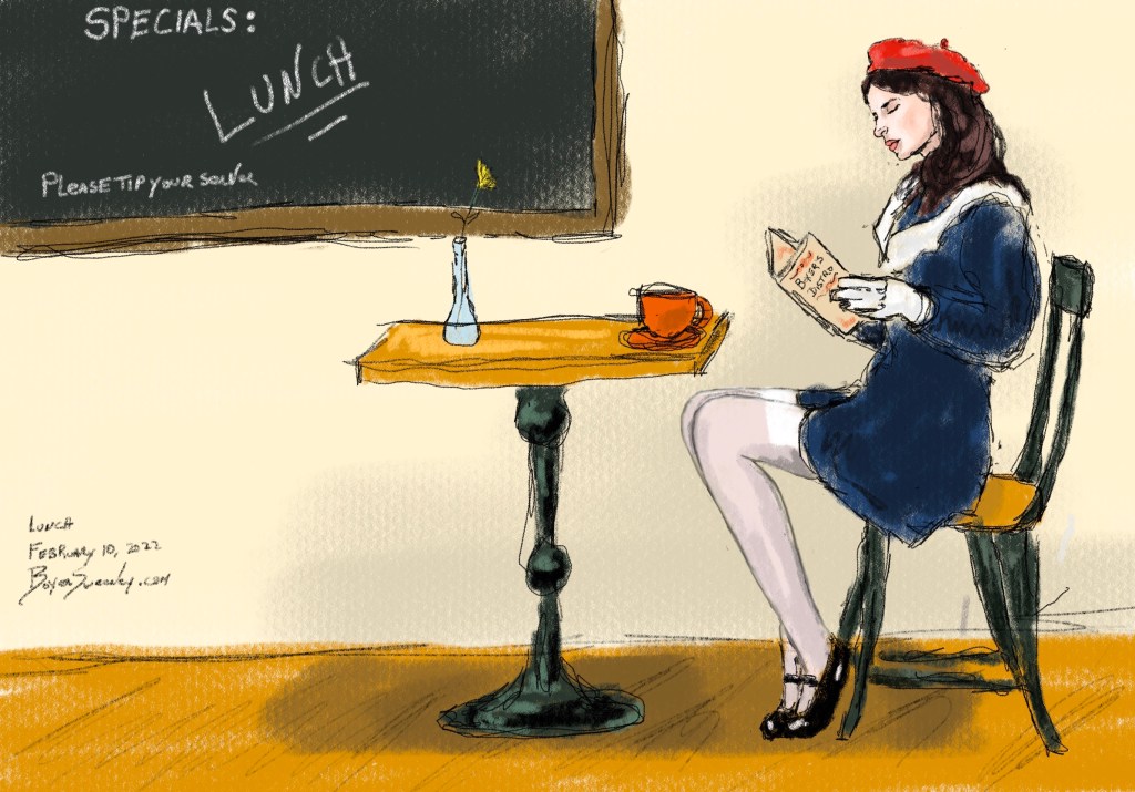 Lunch Share this: Click to email a link to a friend (Opens in new window) Email Click to share on X (Opens in new window) X Click to share on Pinterest (Opens in new window) Pinterest Click to share on Tumblr (Opens in new window) Tumblr Like Loading... February 10, 2022 by B.X. Sweeney Categories: iPad painting, procreateTags: digital art, figure drawing, ipad drawing, portrait Leave a comment