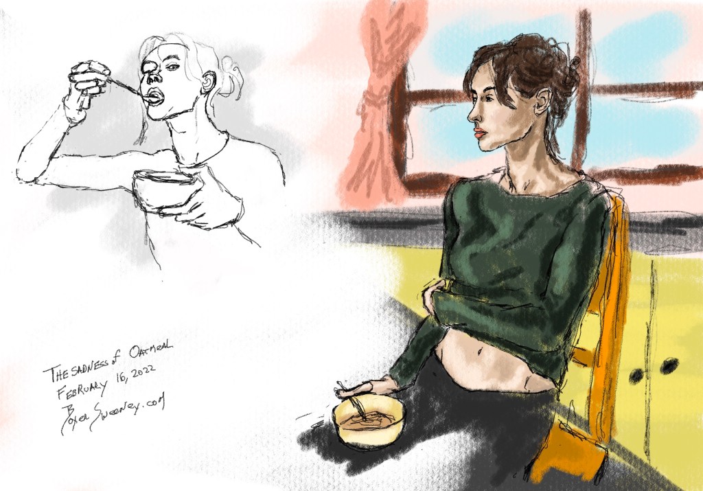 The Sadness of Oatmeal Share this: Click to email a link to a friend (Opens in new window) Email Click to share on X (Opens in new window) X Click to share on Pinterest (Opens in new window) Pinterest Click to share on Tumblr (Opens in new window) Tumblr Like Loading... February 16, 2022 by B.X. Sweeney Categories: iPad painting, procreateTags: digital art, figure drawing, ipad drawing, portrait Leave a comment