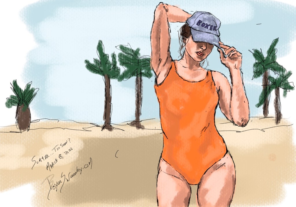 Summer…Too Soon? Share this: Click to email a link to a friend (Opens in new window) Email Click to share on X (Opens in new window) X Click to share on Pinterest (Opens in new window) Pinterest Click to share on Tumblr (Opens in new window) Tumblr Like Loading... March 8, 2022 by B.X. Sweeney Categories: iPad painting, procreateTags: digital art, figure drawing, ipad drawing, portrait Leave a comment