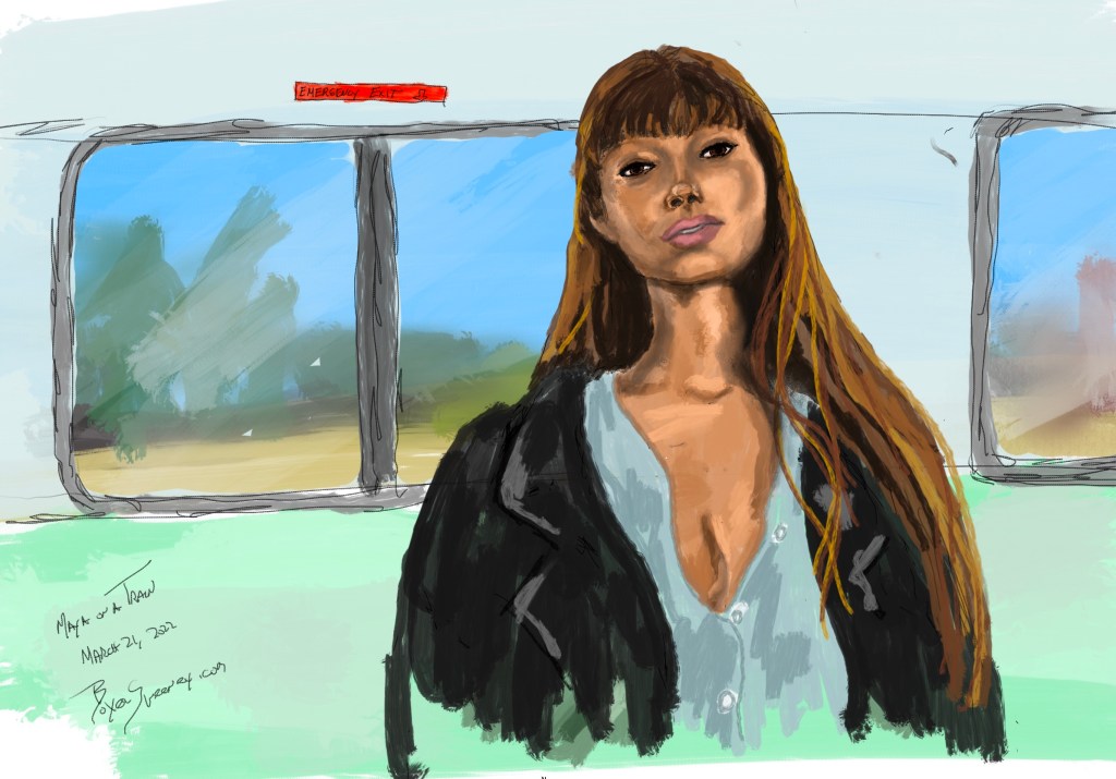 Maya on a Train Share this: Click to email a link to a friend (Opens in new window) Email Click to share on X (Opens in new window) X Click to share on Pinterest (Opens in new window) Pinterest Click to share on Tumblr (Opens in new window) Tumblr Like Loading... March 21, 2022 by B.X. Sweeney Categories: iPad painting, procreateTags: digital art, figure drawing, ipad drawing, portrait Leave a comment