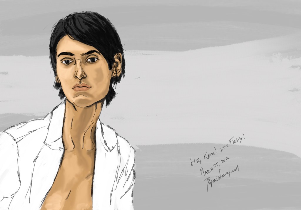 Hey Kate! It’s Friday! Share this: Click to email a link to a friend (Opens in new window) Email Click to share on X (Opens in new window) X Click to share on Pinterest (Opens in new window) Pinterest Click to share on Tumblr (Opens in new window) Tumblr Like Loading... March 25, 2022 by B.X. Sweeney Categories: iPad painting, procreateTags: digital art, figure drawing, portrait Leave a comment