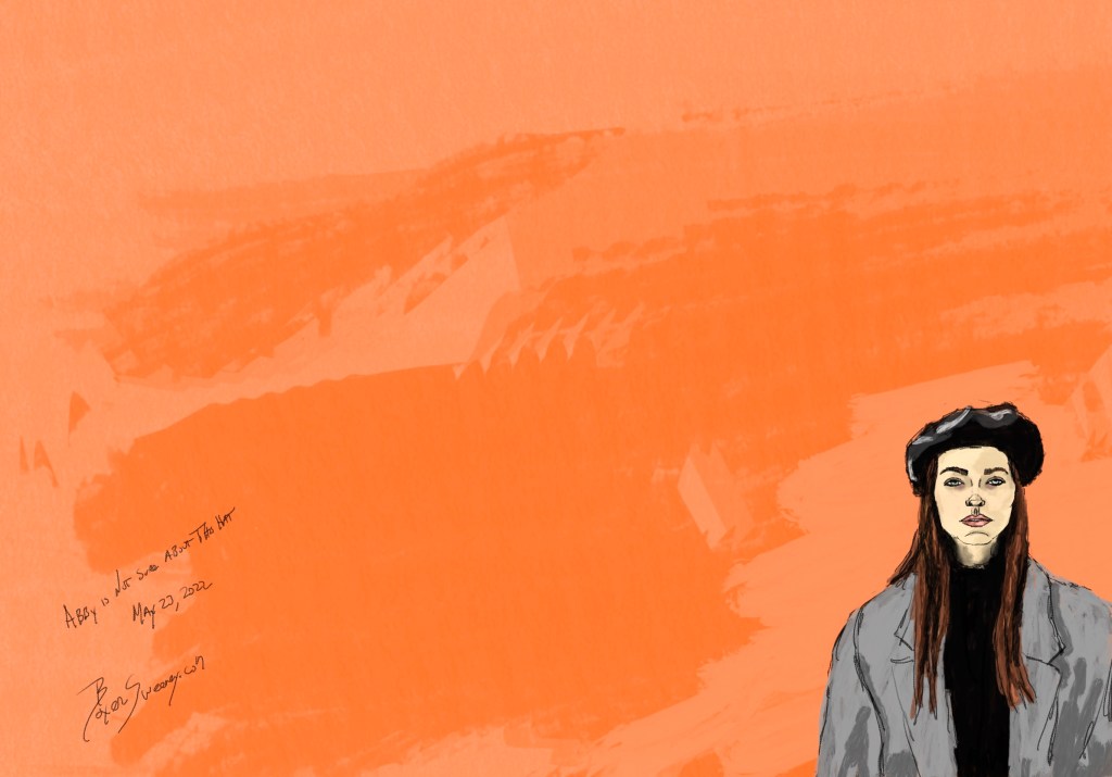 Abby is not Sure About This Hat Share this: Click to email a link to a friend (Opens in new window) Email Click to share on X (Opens in new window) X Click to share on Pinterest (Opens in new window) Pinterest Click to share on Tumblr (Opens in new window) Tumblr Like Loading... May 23, 2022 by B.X. Sweeney Categories: iPad painting, procreateTags: digital art, figure drawing, ipad drawing, portrait Leave a comment