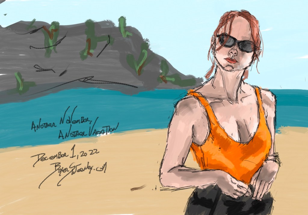 Another November, Another Vacation Share this: Click to email a link to a friend (Opens in new window) Email Click to share on X (Opens in new window) X Click to share on Pinterest (Opens in new window) Pinterest Click to share on Tumblr (Opens in new window) Tumblr Like Loading... December 1, 2022 by B.X. Sweeney Categories: iPad painting, procreateTags: digital art, figure drawing, ipad drawing, portrait 1 Comment