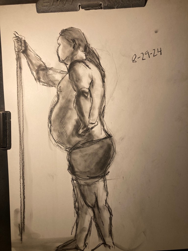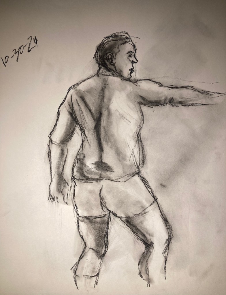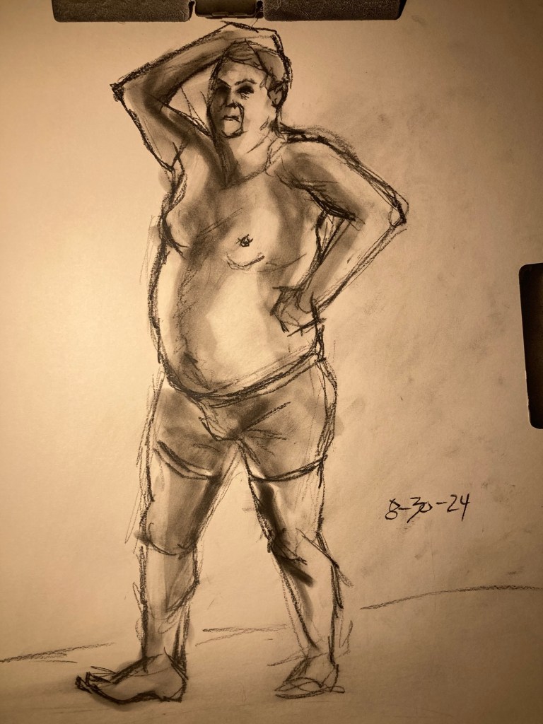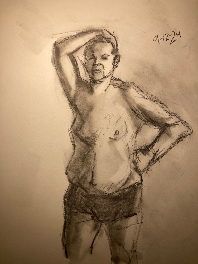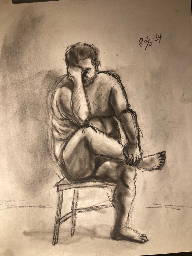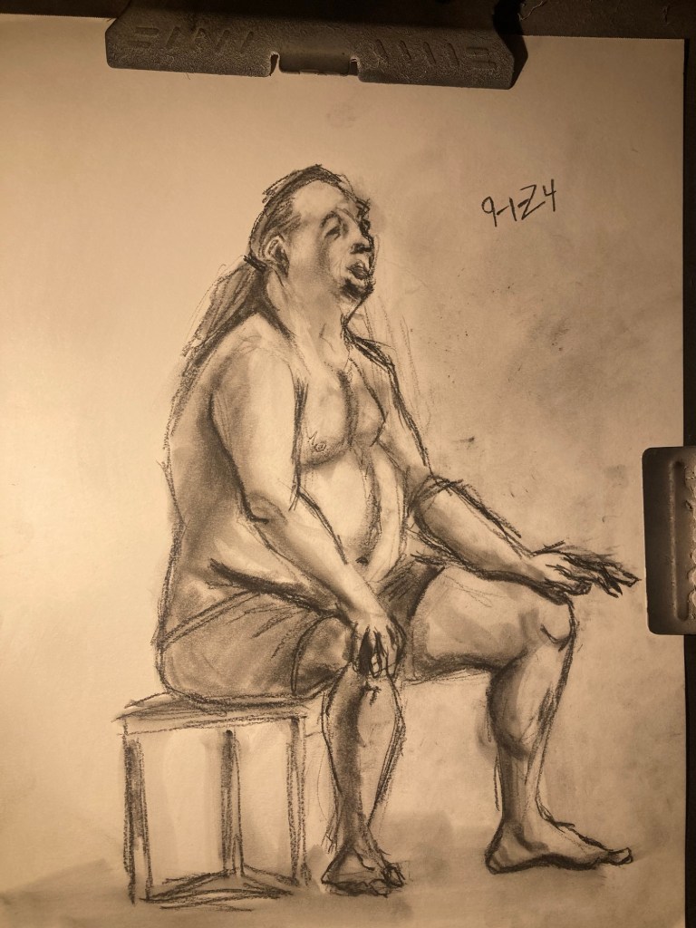 Share this: Click to email a link to a friend (Opens in new window) Email Click to share on X (Opens in new window) X Click to share on Pinterest (Opens in new window) Pinterest Click to share on Tumblr (Opens in new window) Tumblr Like Loading... January 6, 2025 by B.X. Sweeney Categories: charcoalTags: drawing, figure drawing, life drawing Leave a comment