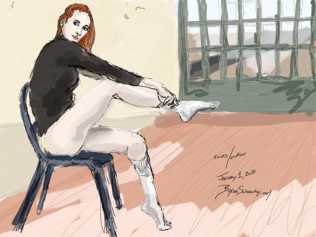Socks/Window Share this: Click to email a link to a friend (Opens in new window) Email Click to share on X (Opens in new window) X Click to share on Pinterest (Opens in new window) Pinterest Click to share on Tumblr (Opens in new window) Tumblr Like Loading... January 1, 2018January 2, 2018 by B.X. Sweeney Categories: iPad paintingTags: art, digital art, figure drawing, ipad drawing, painting, sarah o’hara Leave a comment