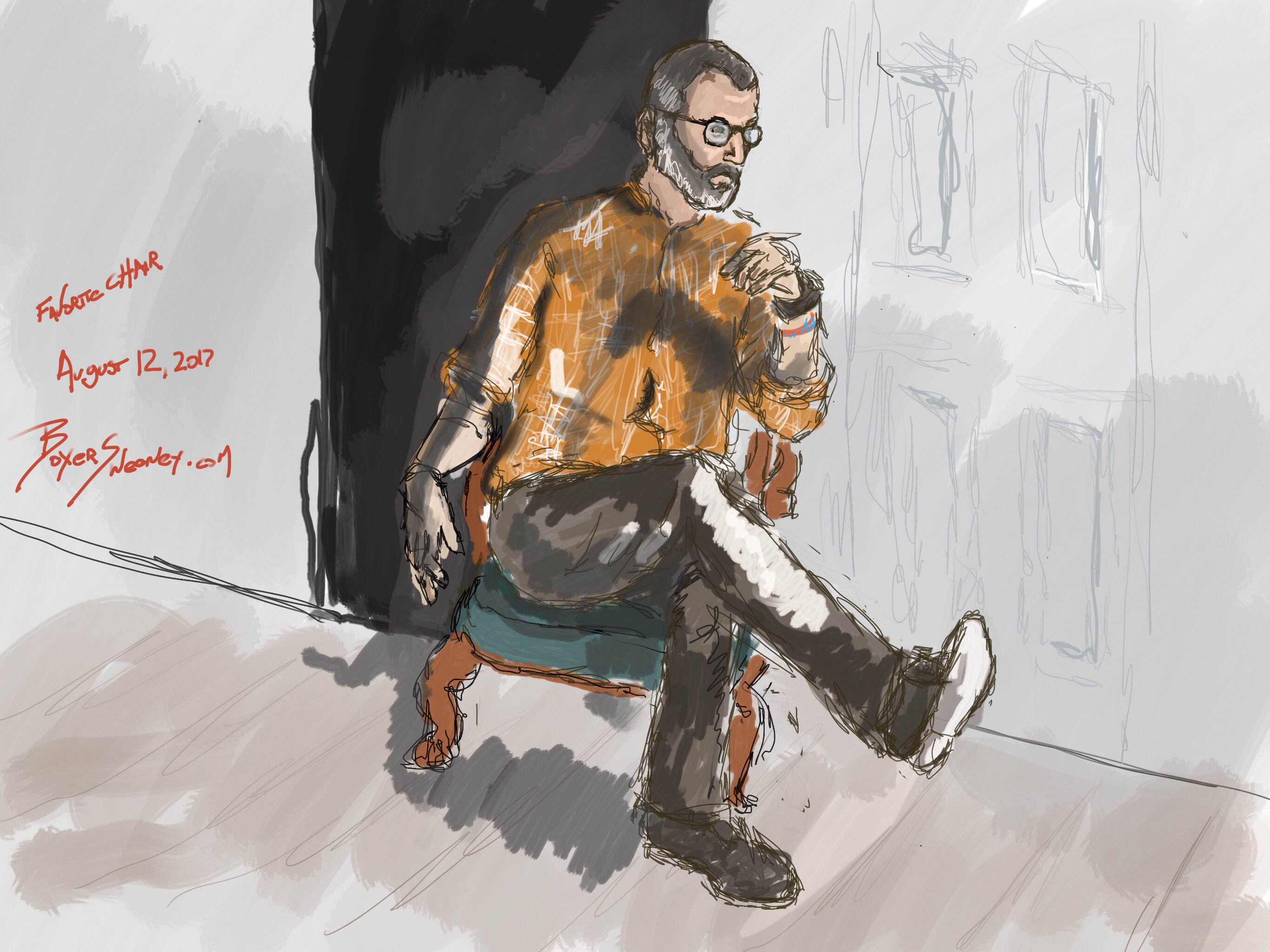 Favorite Chair Share this: Click to email a link to a friend (Opens in new window) Email Click to share on X (Opens in new window) X Click to share on Pinterest (Opens in new window) Pinterest Click to share on Tumblr (Opens in new window) Tumblr Like Loading... August 12, 2017 by B.X. Sweeney Categories: iPad painting, Self PortraitTags: art, figure drawing, ipad drawing, painting, self portrait, sketch Leave a comment