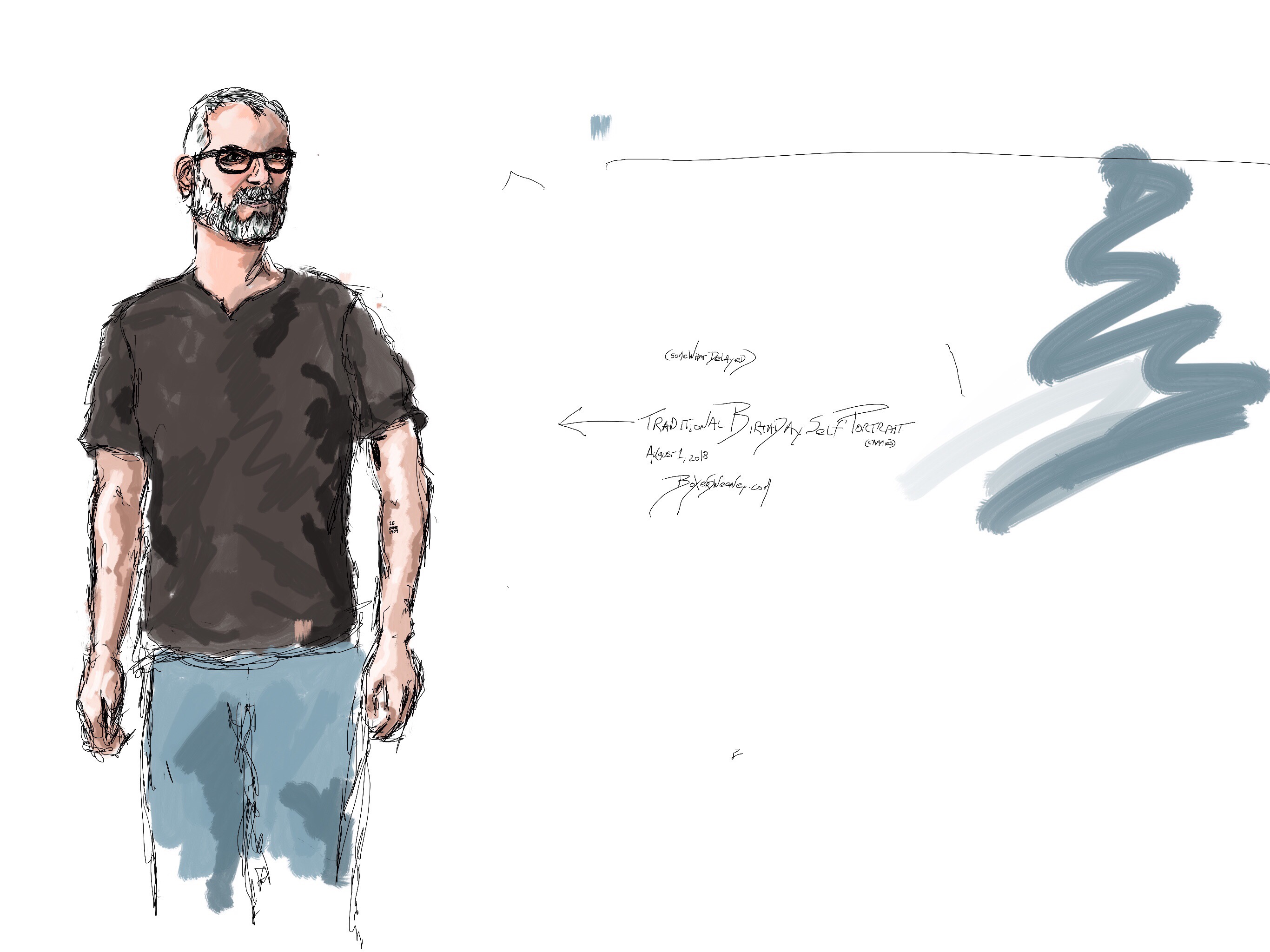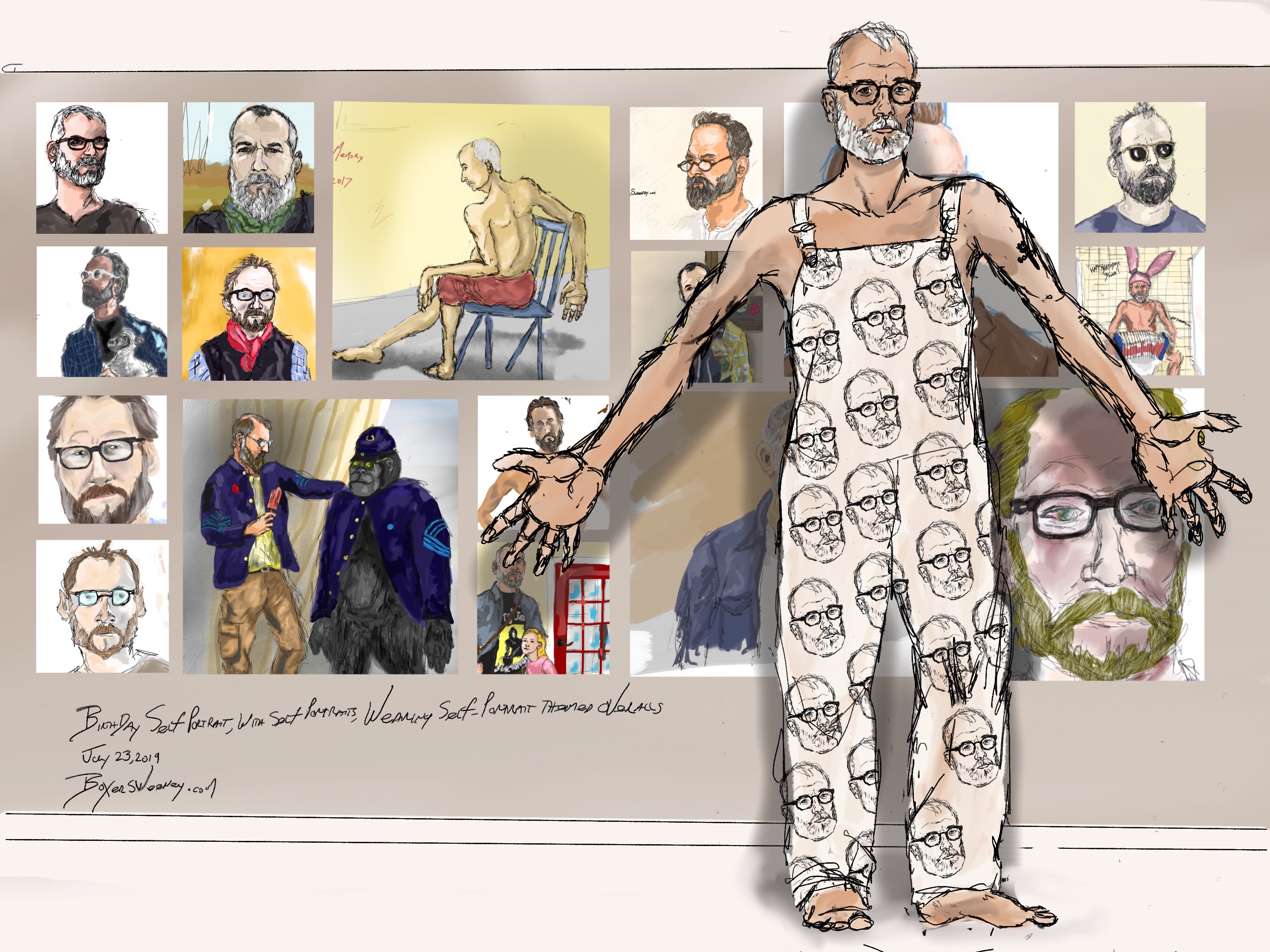 Birthday Self Portrait, with Self Portraits, Wearing Self Portrait Themed Overalls Share this: Click to email a link to a friend (Opens in new window) Email Click to share on X (Opens in new window) X Click to share on Pinterest (Opens in new window) Pinterest Click to share on Tumblr (Opens in new window) Tumblr Like Loading... July 24, 2019 by B.X. Sweeney Categories: iPad painting, Self PortraitTags: digital art, drawing, ipad drawing, portrait, self portrait, sketch Leave a comment