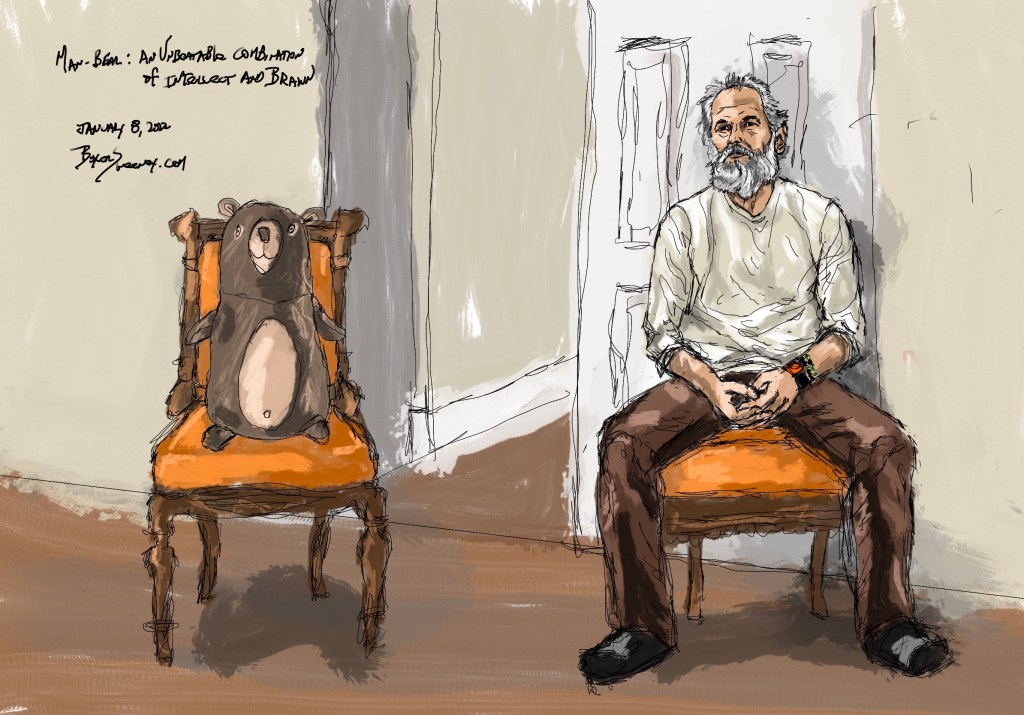 Man-Bear: An Unbeatable Combination of Intellect and Brawn Share this: Click to email a link to a friend (Opens in new window) Email Click to share on X (Opens in new window) X Click to share on Pinterest (Opens in new window) Pinterest Click to share on Tumblr (Opens in new window) Tumblr Like Loading... January 8, 2022 by B.X. Sweeney Categories: iPad painting, procreate, Self PortraitTags: digital art, digitial art, ipad drawing, portrait, self portrait Leave a comment