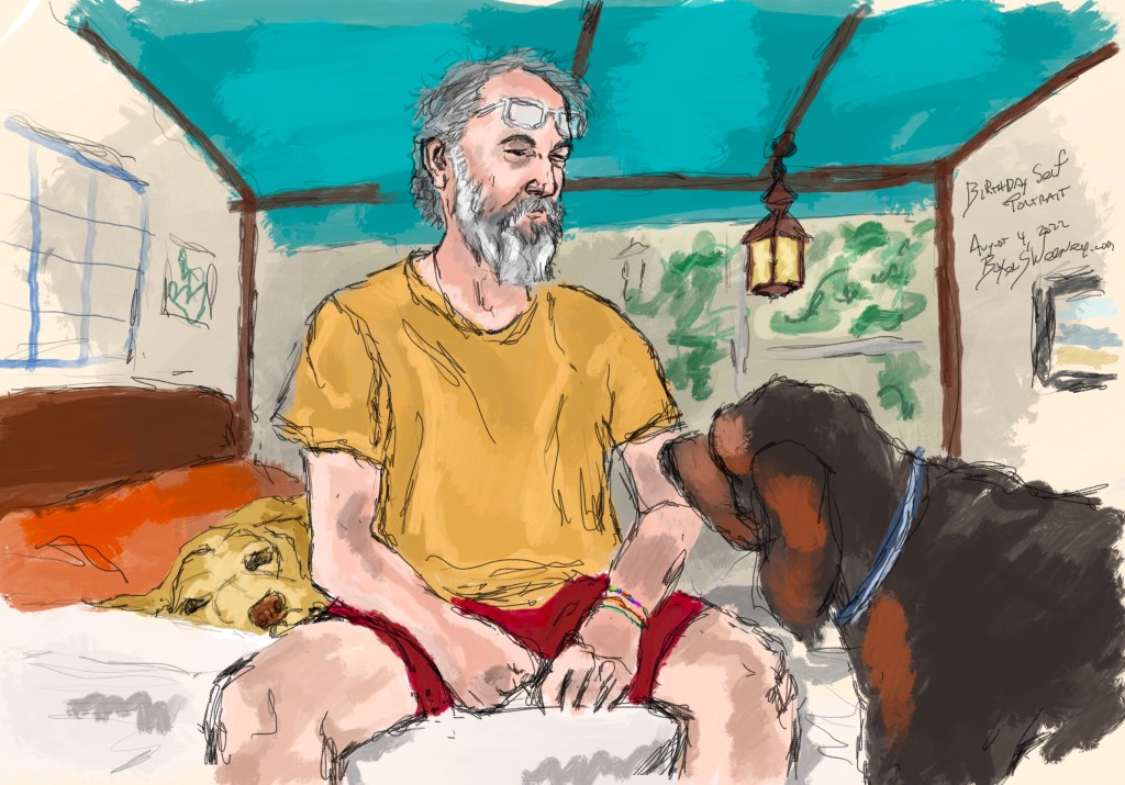 Traditional Birthday Self Portrait-Jammies Share this: Click to email a link to a friend (Opens in new window) Email Click to share on X (Opens in new window) X Click to share on Pinterest (Opens in new window) Pinterest Click to share on Tumblr (Opens in new window) Tumblr Like Loading... August 1, 2018 by B.X. Sweeney Categories: iPad painting, Self PortraitTags: art, digital art, drawing, figure drawing, ipad drawing, paul pastrone, self portrait, sketch Leave a comment