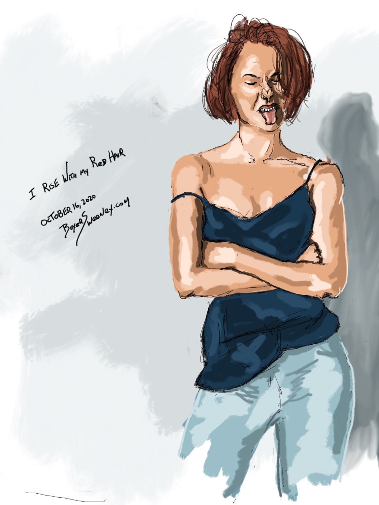 I Rise with my Red Hair Share this: Click to email a link to a friend (Opens in new window) Email Click to share on X (Opens in new window) X Click to share on Pinterest (Opens in new window) Pinterest Click to share on Tumblr (Opens in new window) Tumblr Like Loading... October 16, 2020 by B.X. Sweeney Categories: iPad paintingTags: art, digital art, drawing, figure drawing, sketch Leave a comment