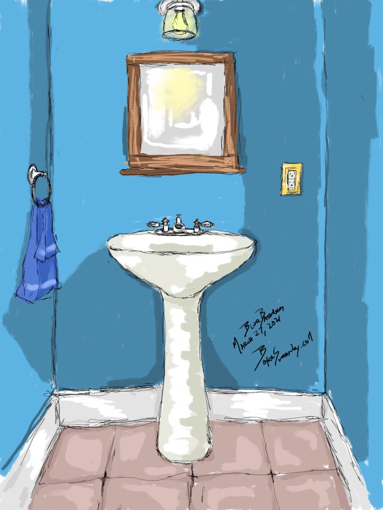 Blue Bathroom Share this: Click to email a link to a friend (Opens in new window) Email Click to share on X (Opens in new window) X Click to share on Pinterest (Opens in new window) Pinterest Click to share on Tumblr (Opens in new window) Tumblr Like Loading... March 27, 2021 by B.X. Sweeney Categories: iPad paintingTags: digital art, drawing, ipad drawing, sketch Leave a comment