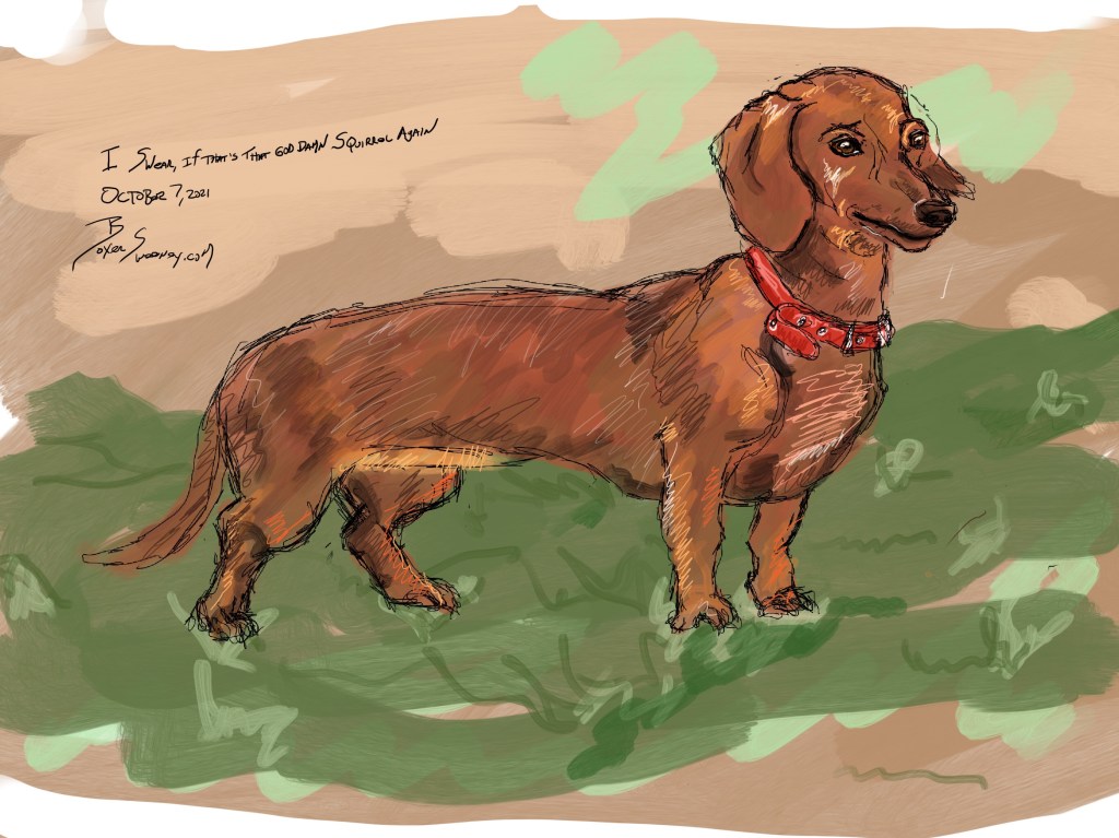 I Swear, if That’s That God-Damn Squirrel Again Share this: Click to email a link to a friend (Opens in new window) Email Click to share on X (Opens in new window) X Click to share on Pinterest (Opens in new window) Pinterest Click to share on Tumblr (Opens in new window) Tumblr Like Loading... October 7, 2021 by B.X. Sweeney Categories: iPad paintingTags: digital art, drawing, ipad drawing, sketch Leave a comment