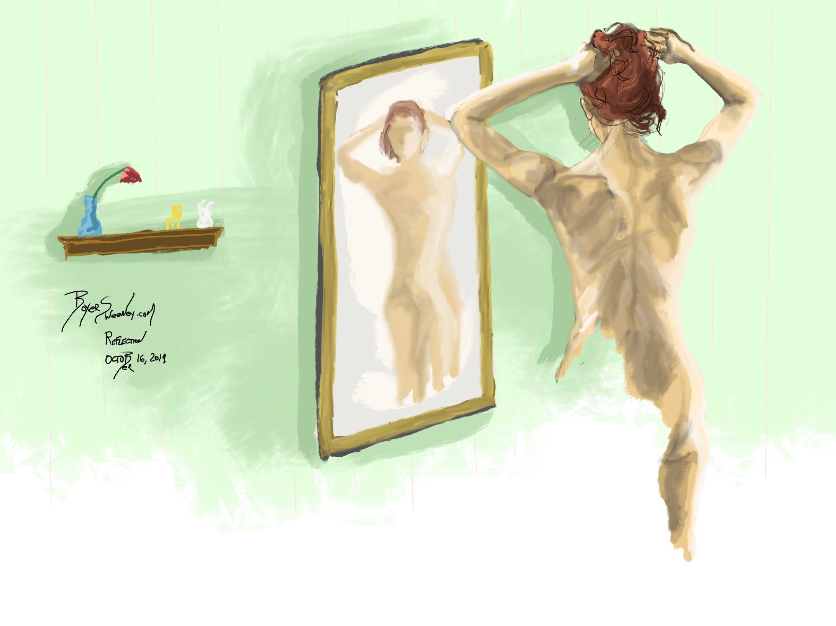 Reflection Share this: Click to email a link to a friend (Opens in new window) Email Click to share on X (Opens in new window) X Click to share on Pinterest (Opens in new window) Pinterest Click to share on Tumblr (Opens in new window) Tumblr Like Loading... October 16, 2019 by B.X. Sweeney Categories: iPad painting, nudeTags: digital art, drawing, figure drawing, ipad drawing, sketch Leave a comment