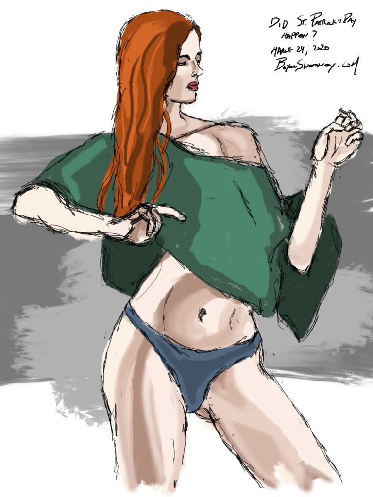 Did St. Patrick’s Day Happen? Share this: Click to email a link to a friend (Opens in new window) Email Click to share on X (Opens in new window) X Click to share on Pinterest (Opens in new window) Pinterest Click to share on Tumblr (Opens in new window) Tumblr Like Loading... March 24, 2020 by B.X. Sweeney Categories: iPad paintingTags: digital art, drawing, figure drawing, portrait, sketch Leave a comment