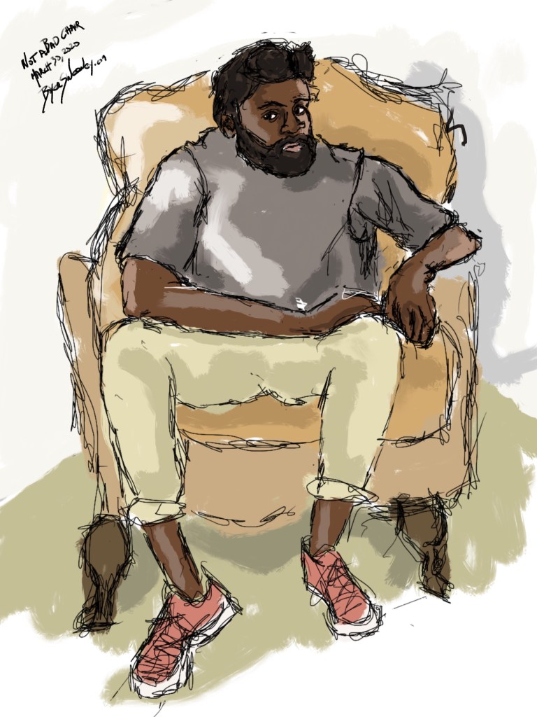 Not a Bad Chair Share this: Click to email a link to a friend (Opens in new window) Email Click to share on X (Opens in new window) X Click to share on Pinterest (Opens in new window) Pinterest Click to share on Tumblr (Opens in new window) Tumblr Like Loading... March 30, 2020 by B.X. Sweeney Categories: iPad paintingTags: drawing, ipad drawing, portrait, sketch Leave a comment