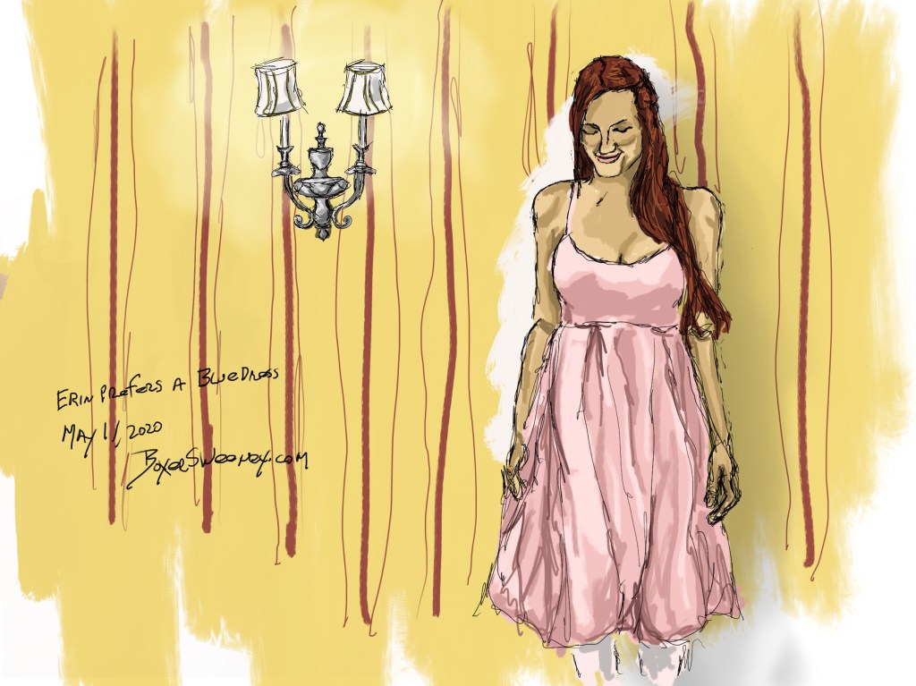 Erin Prefers a Blue Dress Share this: Click to email a link to a friend (Opens in new window) Email Click to share on X (Opens in new window) X Click to share on Pinterest (Opens in new window) Pinterest Click to share on Tumblr (Opens in new window) Tumblr Like Loading... May 11, 2020 by B.X. Sweeney Categories: iPad paintingTags: digital art, drawing, figure drawing, ipad drawing, painting, portrait, sketch Leave a comment