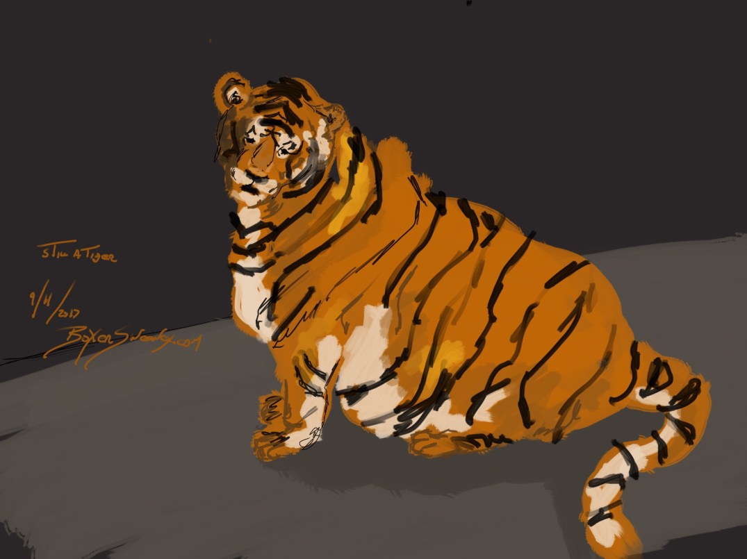 Still a Tiger Share this: Click to email a link to a friend (Opens in new window) Email Click to share on X (Opens in new window) X Click to share on Pinterest (Opens in new window) Pinterest Click to share on Tumblr (Opens in new window) Tumblr Like Loading... September 12, 2017 by B.X. Sweeney Categories: iPad paintingTags: art, digital art, drawing, ipad drawing, painting, sketch, tiger Leave a comment