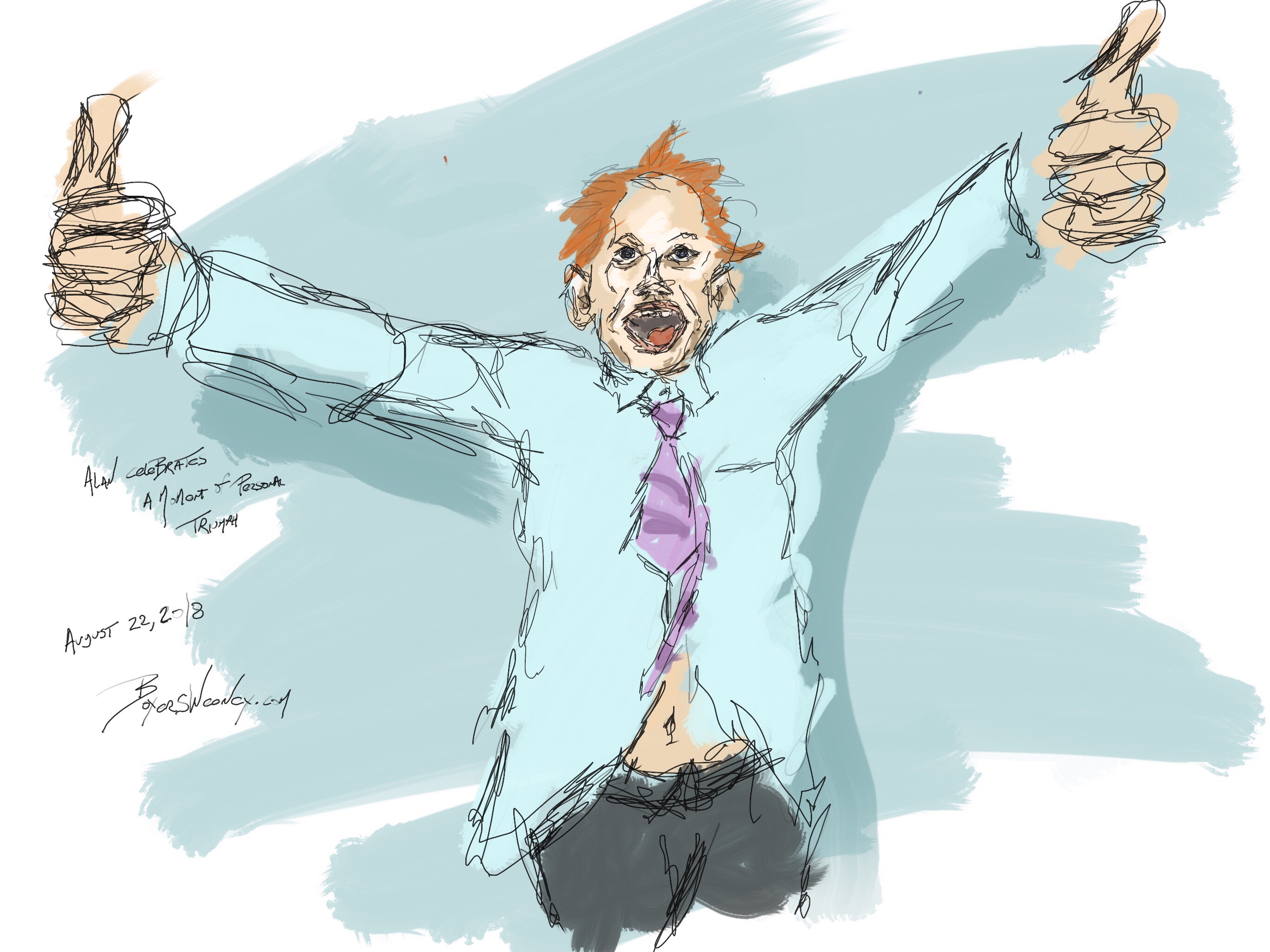 Alan Celebrates a Moment of Personal Triumph Share this: Click to email a link to a friend (Opens in new window) Email Click to share on X (Opens in new window) X Click to share on Pinterest (Opens in new window) Pinterest Click to share on Tumblr (Opens in new window) Tumblr Like Loading... August 22, 2018 by B.X. Sweeney Categories: iPad paintingTags: dogital art, drawing, figure drawing, ipad drawing, sketch Leave a comment