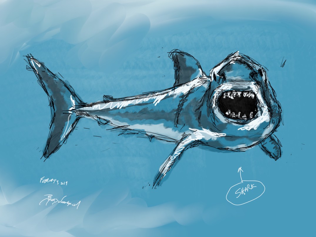 Shark Share this: Click to email a link to a friend (Opens in new window) Email Click to share on X (Opens in new window) X Click to share on Pinterest (Opens in new window) Pinterest Click to share on Tumblr (Opens in new window) Tumblr Like Loading... February 4, 2019July 20, 2019 by B.X. Sweeney Categories: iPad paintingTags: digital art, drawing, ipad drawing, sketch Leave a comment