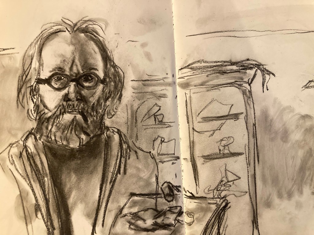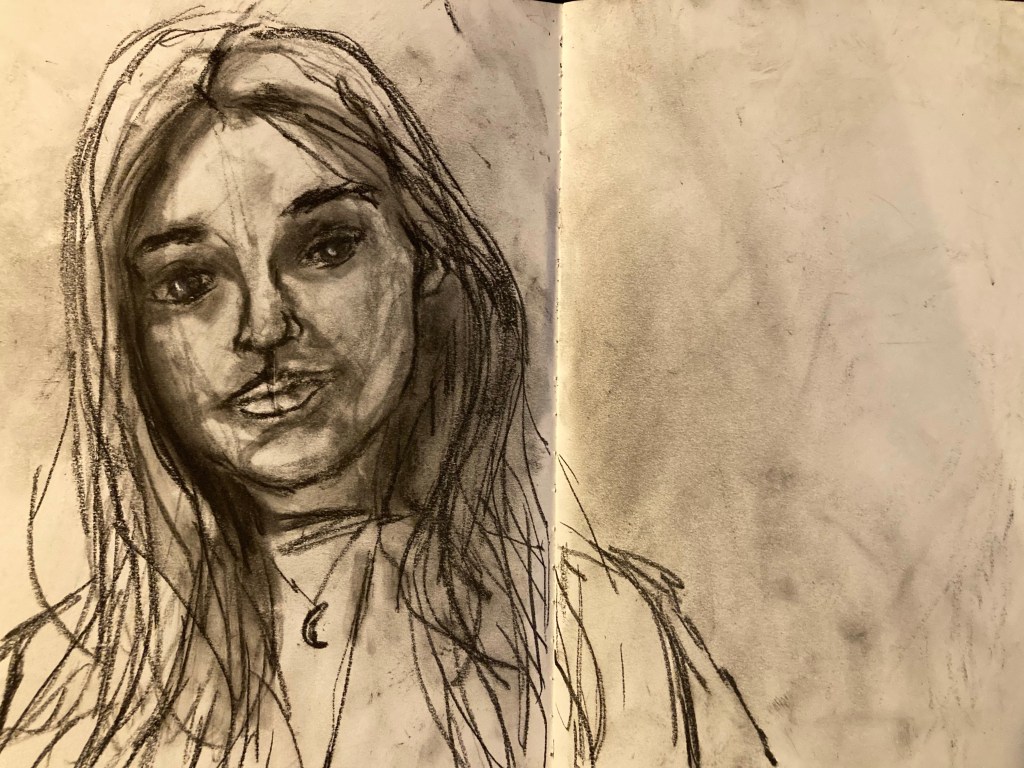 C-24 Share this: Click to email a link to a friend (Opens in new window) Email Click to share on X (Opens in new window) X Click to share on Pinterest (Opens in new window) Pinterest Click to share on Tumblr (Opens in new window) Tumblr Like Loading... February 15, 2023 by B.X. Sweeney Categories: charcoal sketchTags: drawing, figure drawing, portrait, sketchbook Leave a comment
